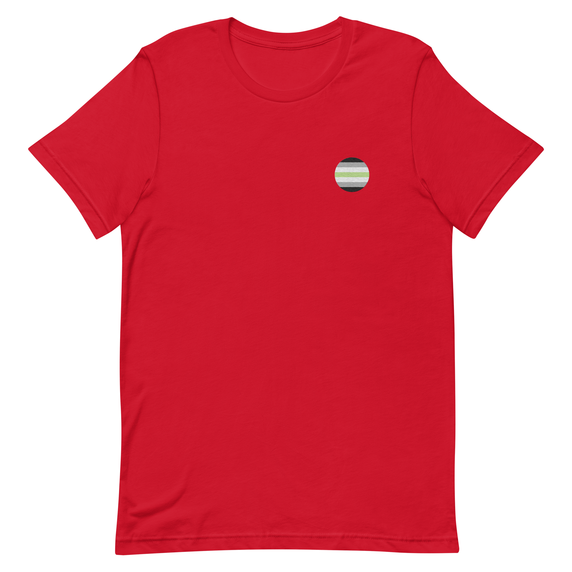 Agender Flag Embroidered Circle Tee: Celebratory LGBTQ+ Pride Design