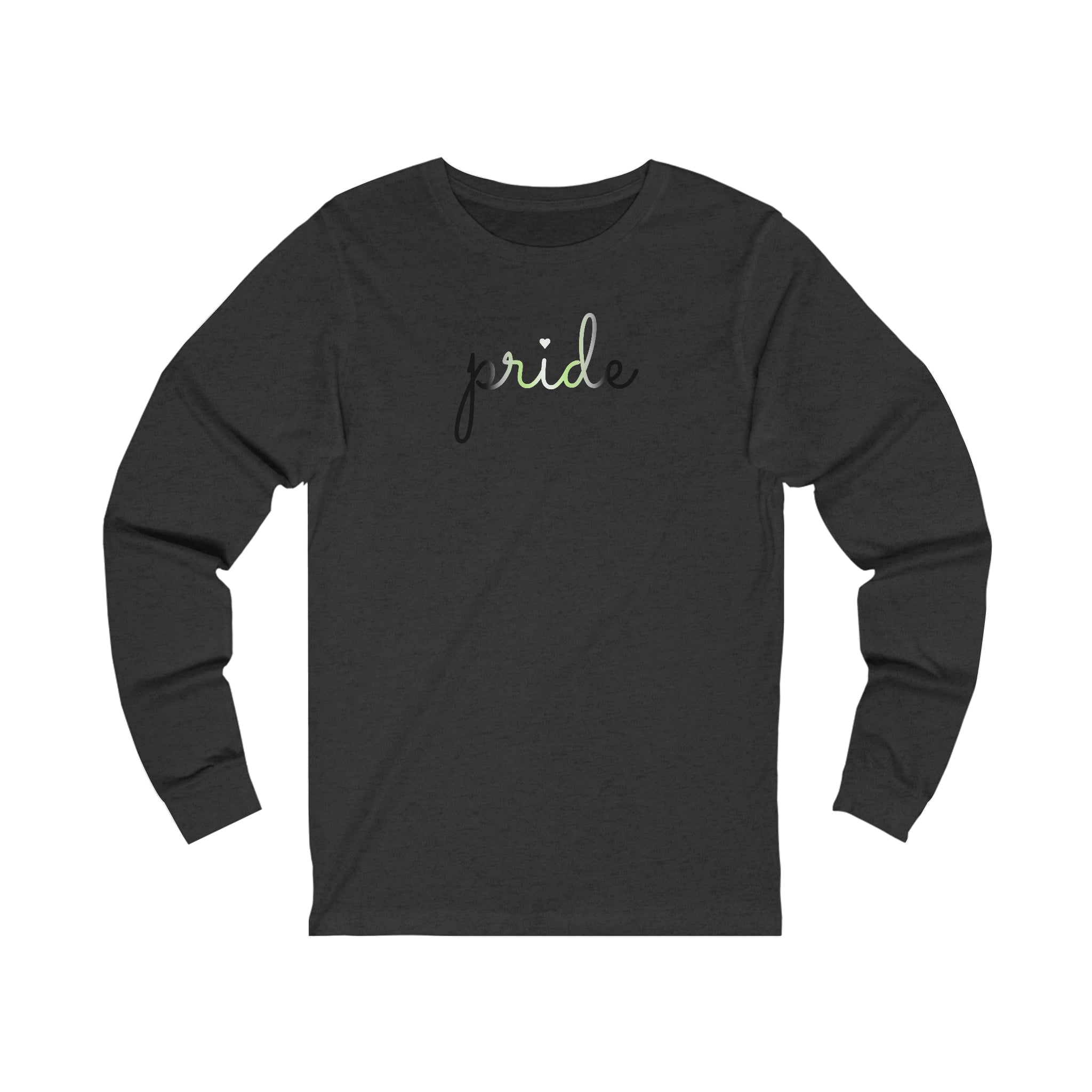 Agender Pride Long Sleeve T-Shirt: Flowing Cursive 'Pride' in Gradient Hues