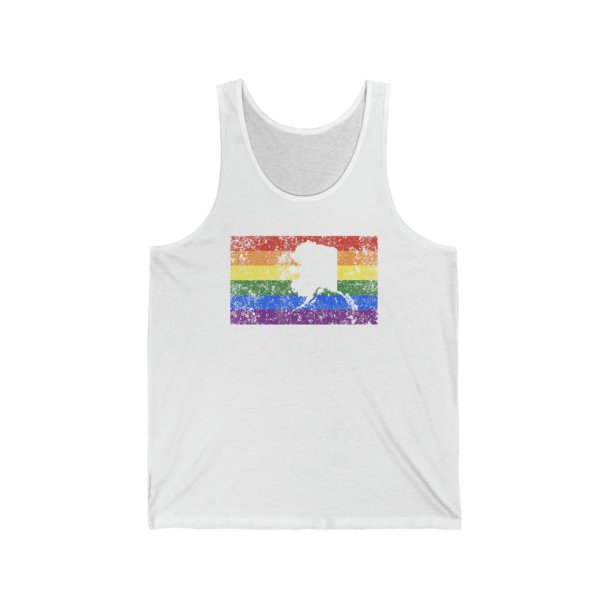 Alaska Pride Flag Tank: Rainbow LGBTQ+ State Silhouette Distressed Tank-Top