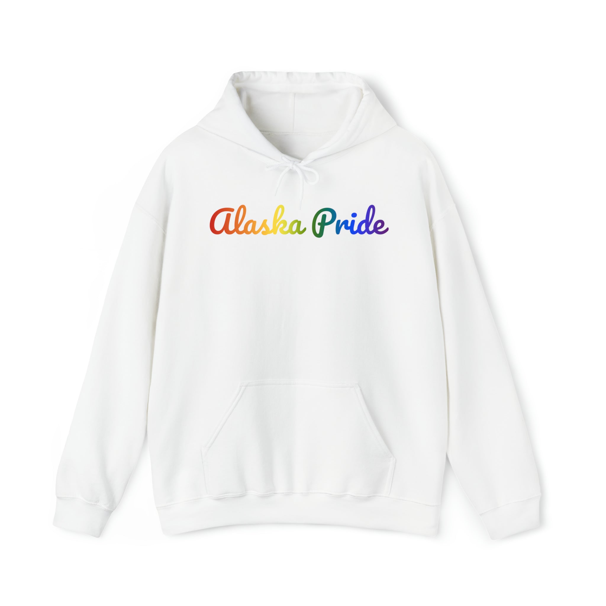 Alaska Pride Hoodie: Flowing Cursive Design with LGBTQ+ Gradient