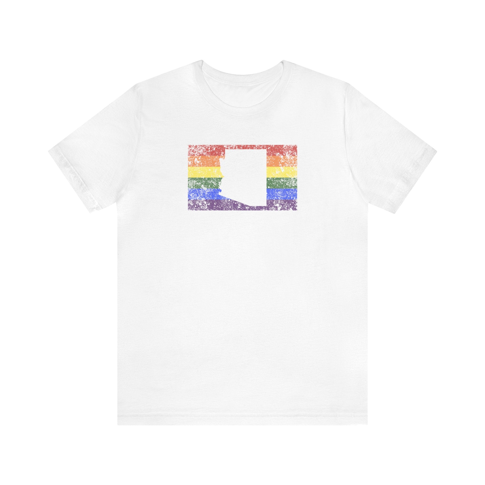 Arizona Pride Flag Tee: Rainbow LGBTQ+ State Silhouette Distressed Shirt