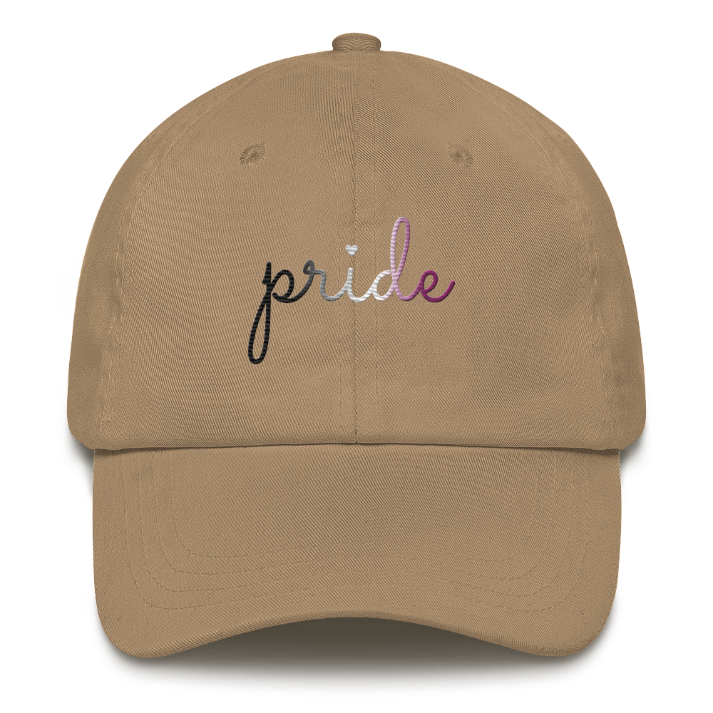 Asexual Pride Hat: Cursive 'Pride' in Gradient Colors