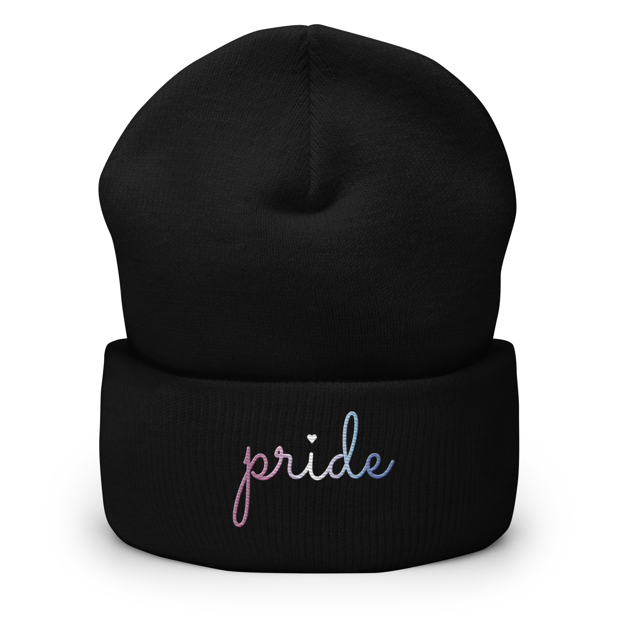 Bigender Pride Beanie: Cursive 'Pride' in Gradient Colors