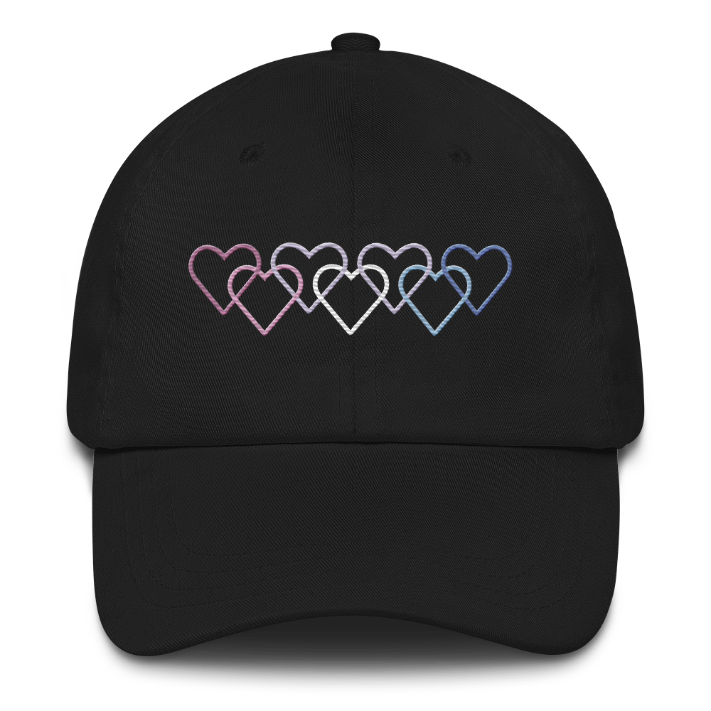 Bigender Pride Hat: Interlaced Heart Outlines Embroidered Cap