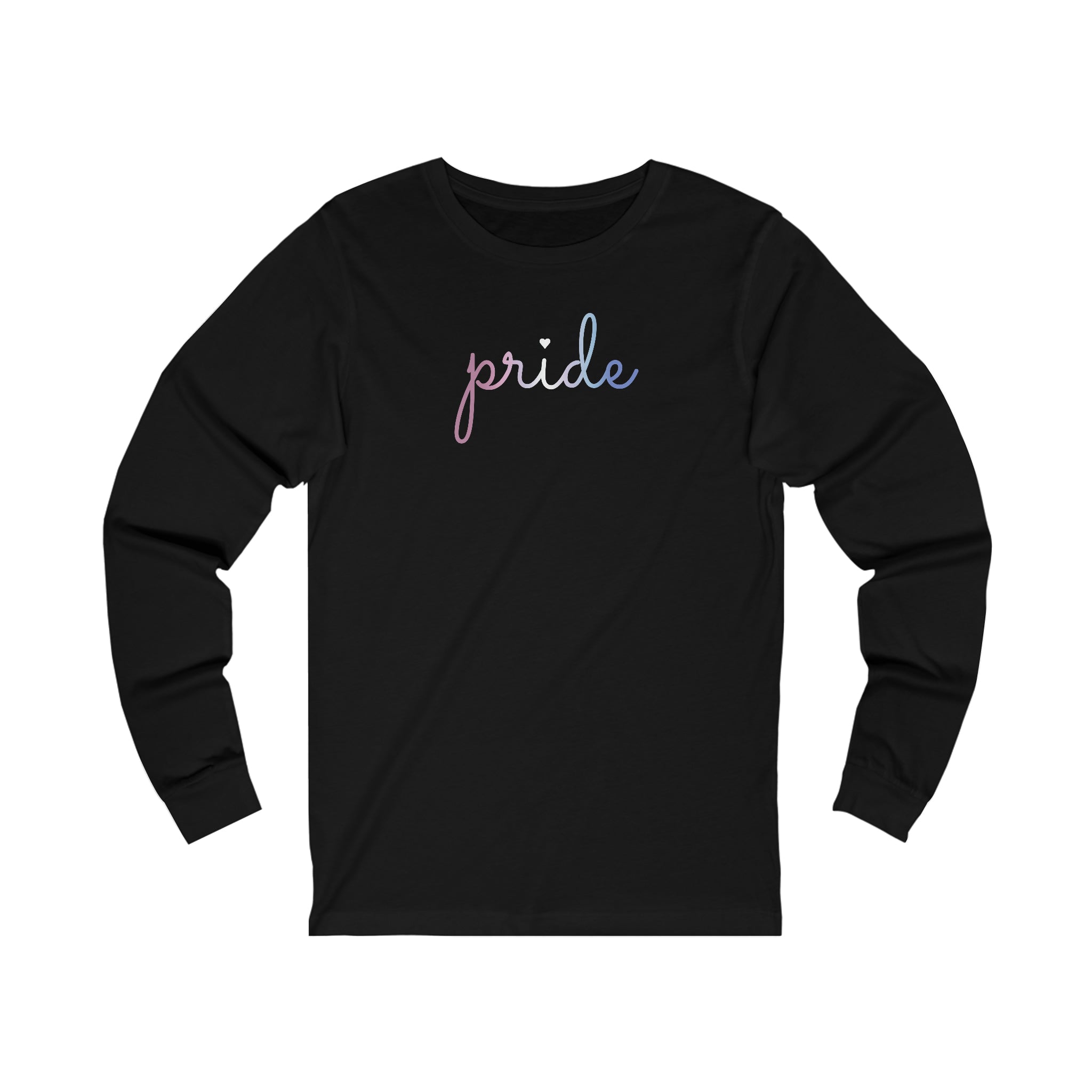Bigender Pride Long Sleeve T-Shirt: Flowing Cursive 'Pride' in Gradient Hues