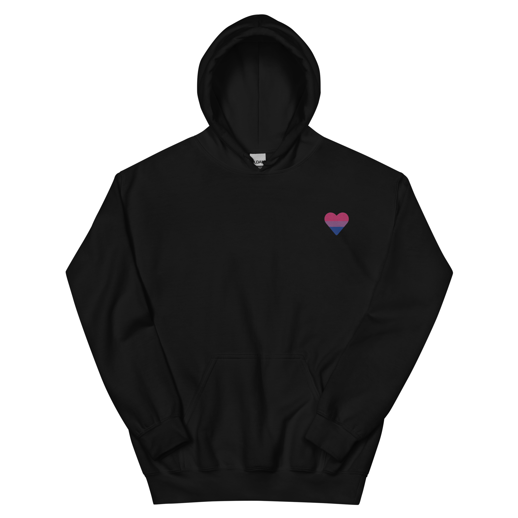 Bisexual Flag Embroidered Heart Hoodie: Celebratory LGBTQ+ Pride Design