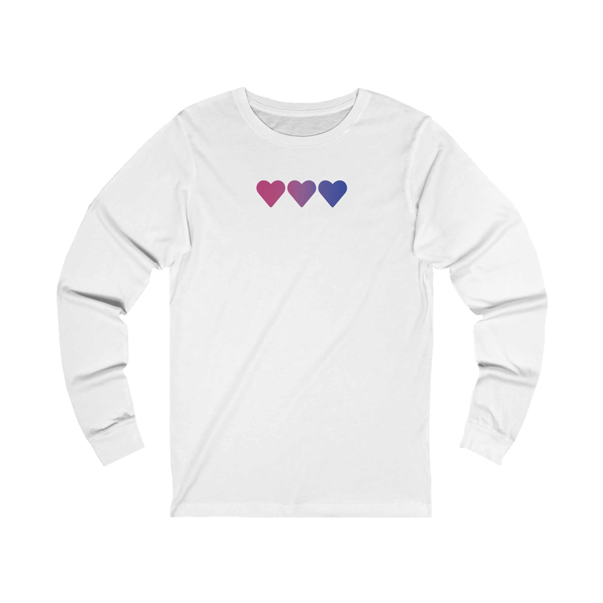 Bisexual Flag Hearts Long Sleeve Tee: Pride LGBTQ+ Gradient Design