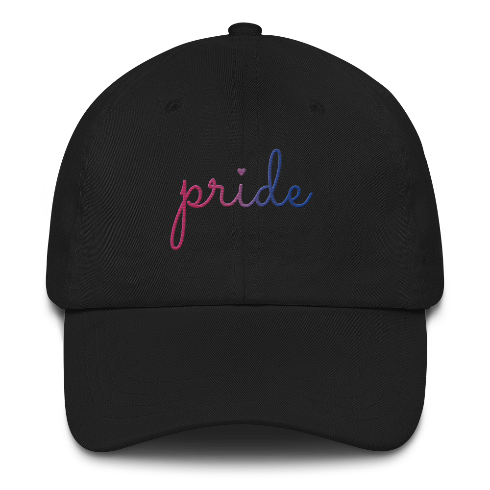 Bisexual Pride Hat: Cursive 'Pride' in Gradient Colors
