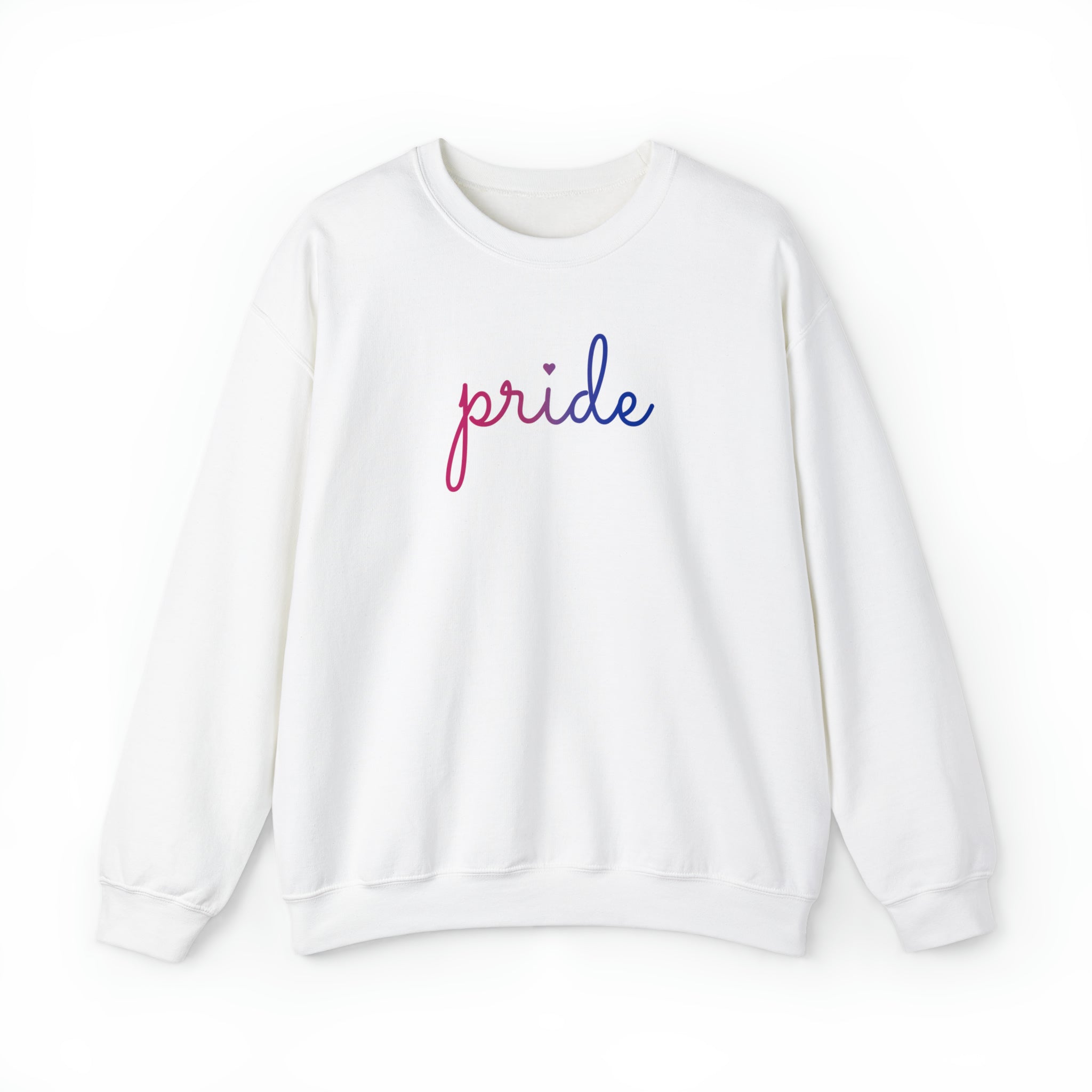 Bisexual Pride Sweater: Flowing Cursive 'Pride' in Gradient Hues