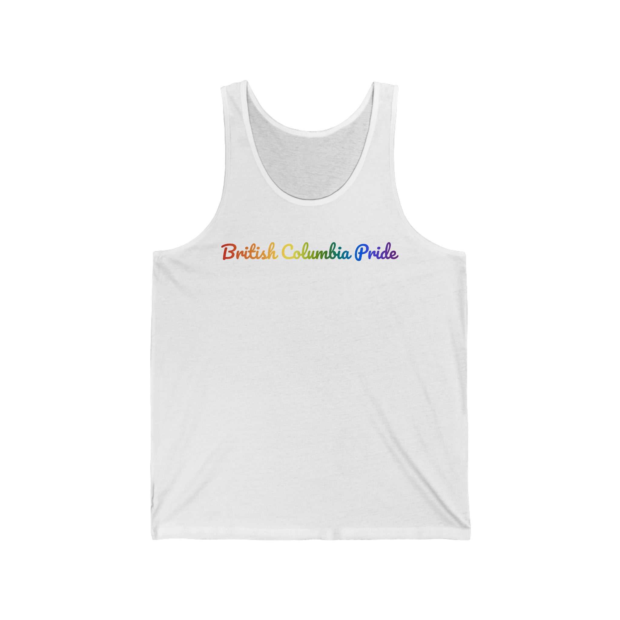 British Columbia Pride Tank Top: Flowing Cursive Design with LGBTQ+ Gradient