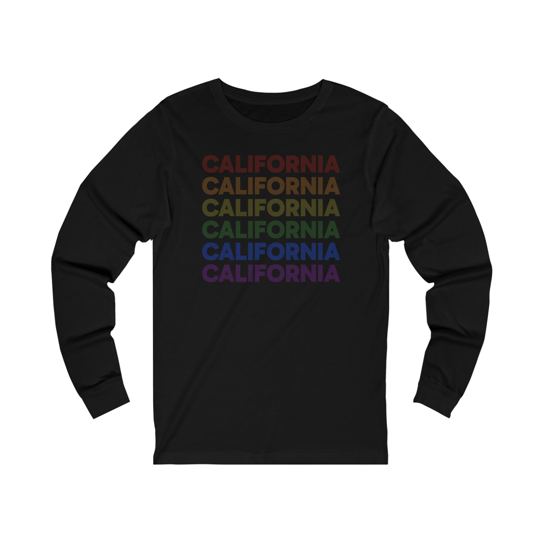 California LGBTQ+ Pride Flag, Faded Black Long Sleeve Tee