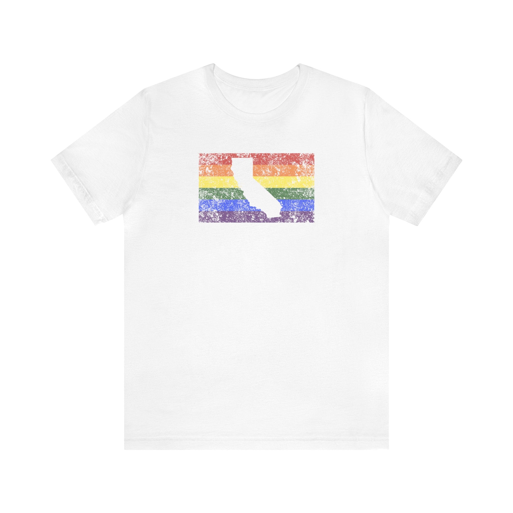 California Pride Flag Tee: Rainbow LGBTQ+ State Silhouette Distressed Shirt