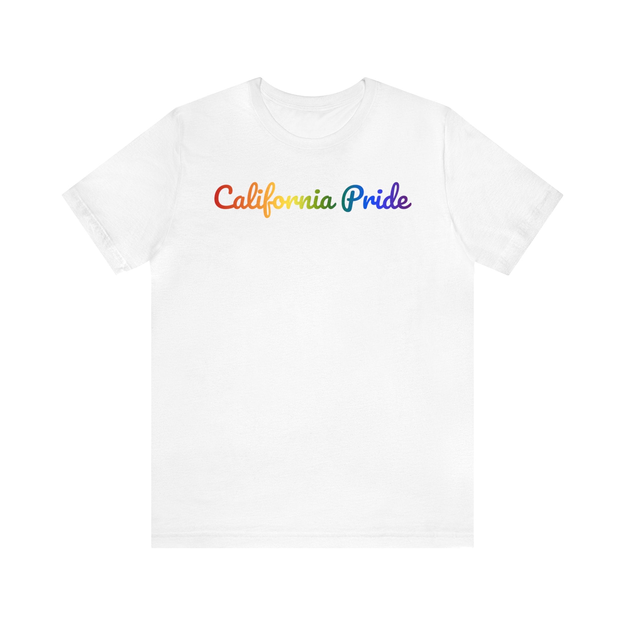 California Pride T-Shirt: Flowing Cursive Design with LGBTQ+ Gradient