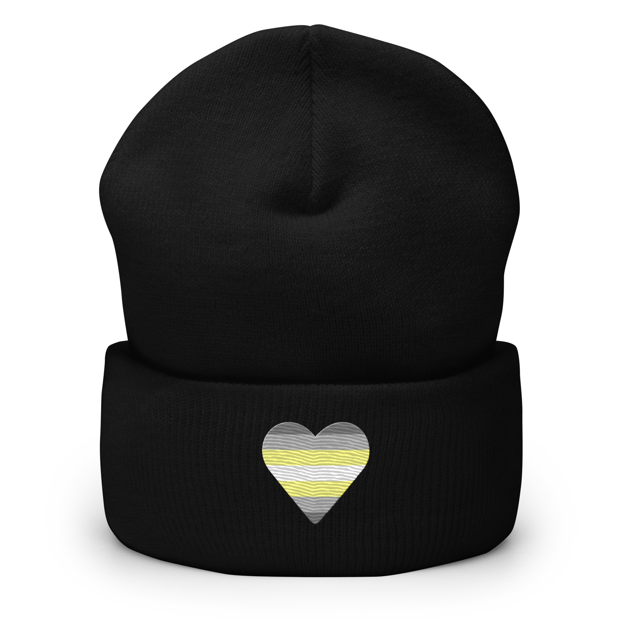 Demigender Flag Embroidered Heart Beanie: Celebratory LGBTQ+ Pride Design