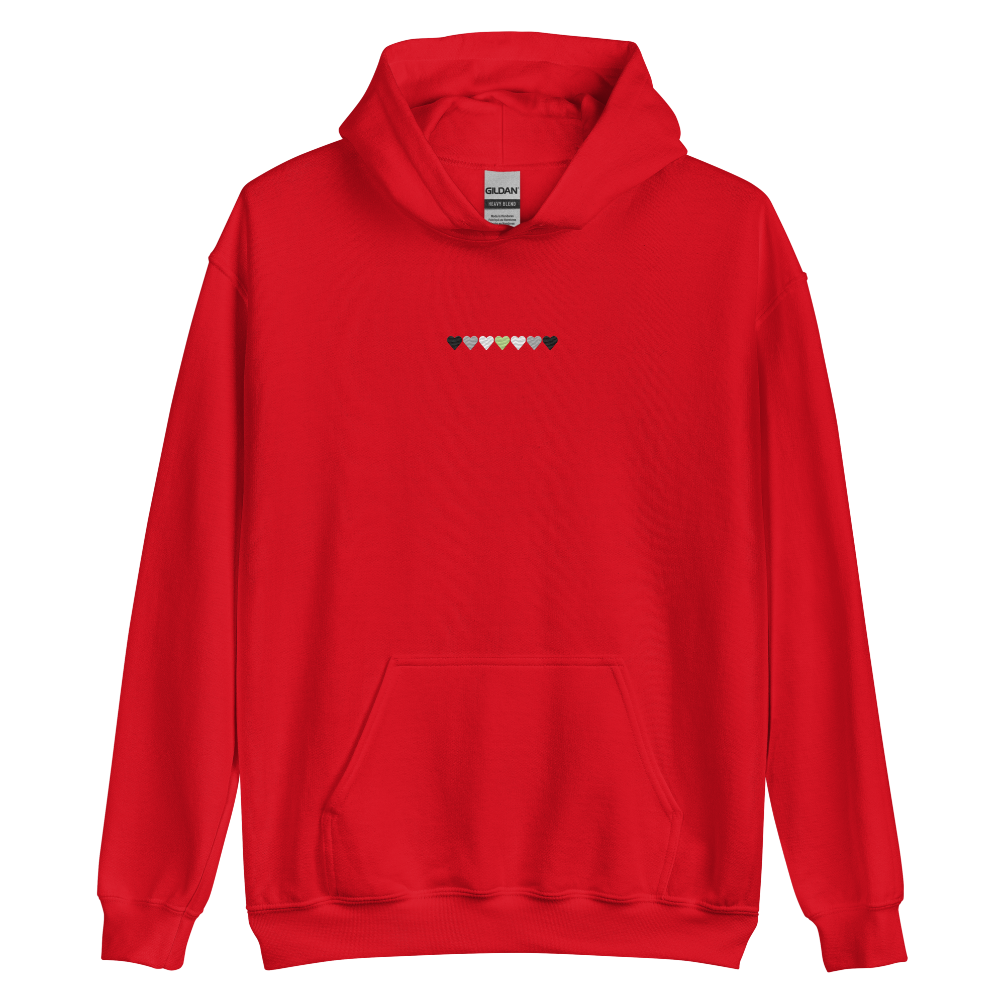 Embroidered Agender Hoodie: Pride Flag Horizontal Heart Design