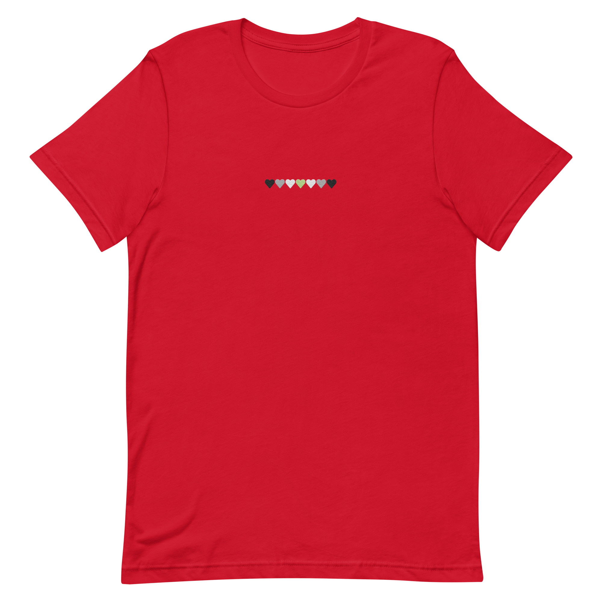 Embroidered Agender T-Shirt: Pride Flag Horizontal Heart Design