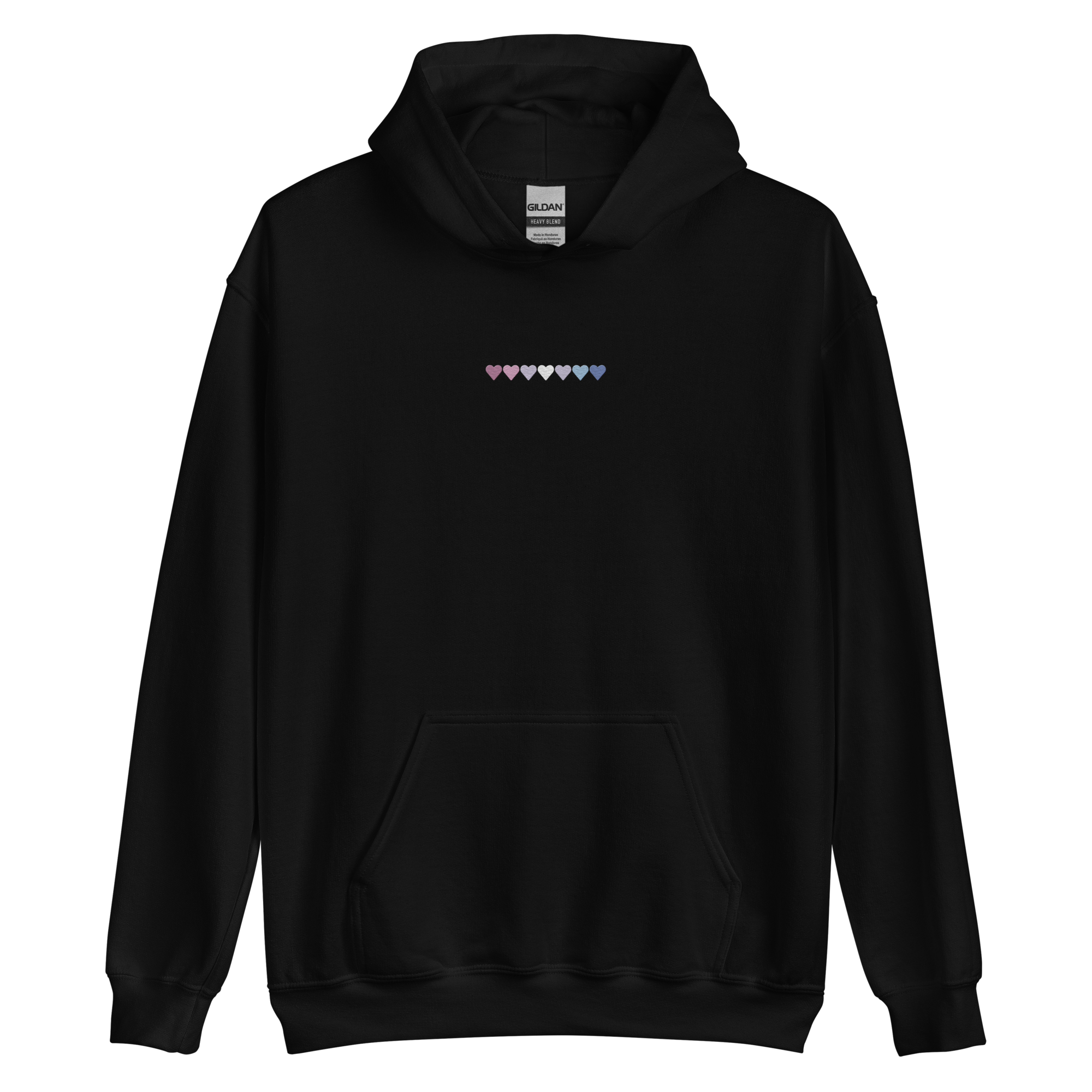 Embroidered Bigender Hoodie: Pride Flag Horizontal Heart Design