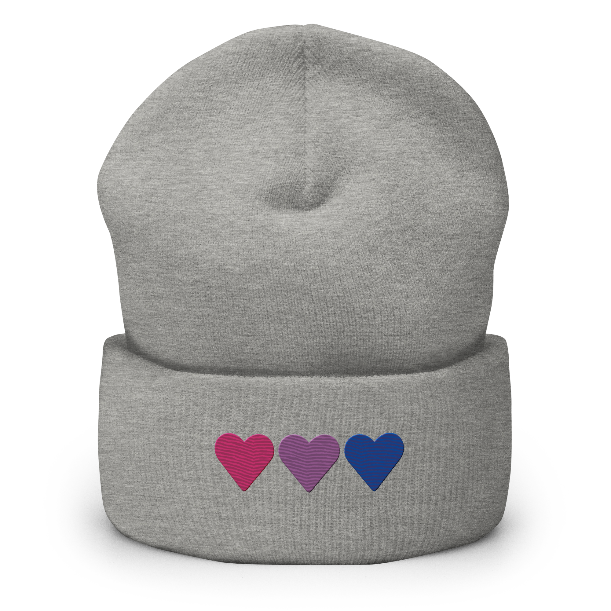 Embroidered Bisexual Beanie: Pride Flag Horizontal Heart Design