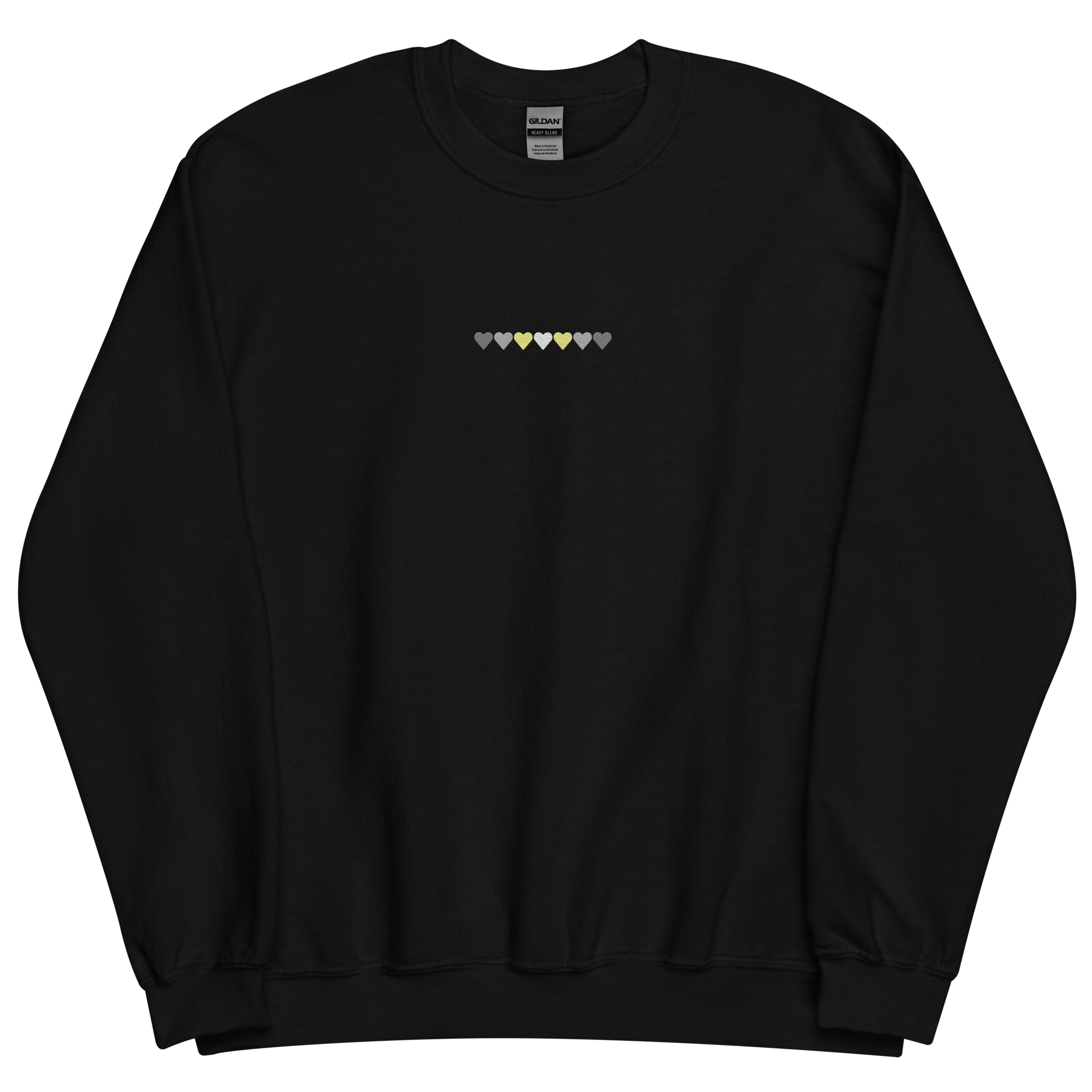 Embroidered Demigender Sweatshirt: Pride Flag Horizontal Heart Design