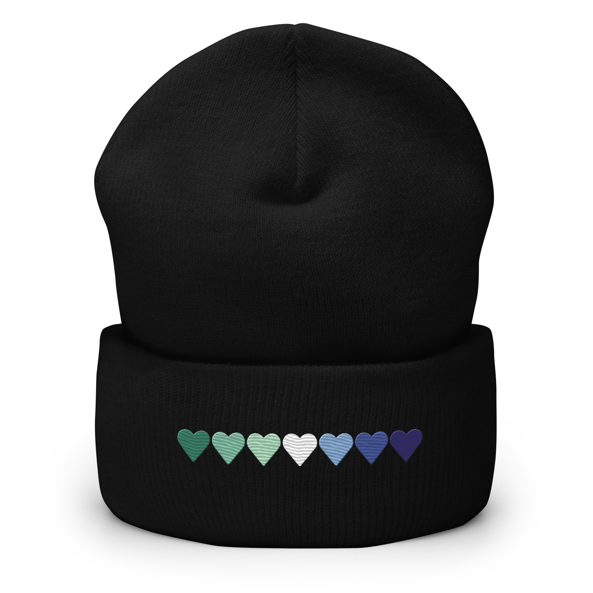Embroidered Gay Pride Beanie: Pride Flag Horizontal Heart Design