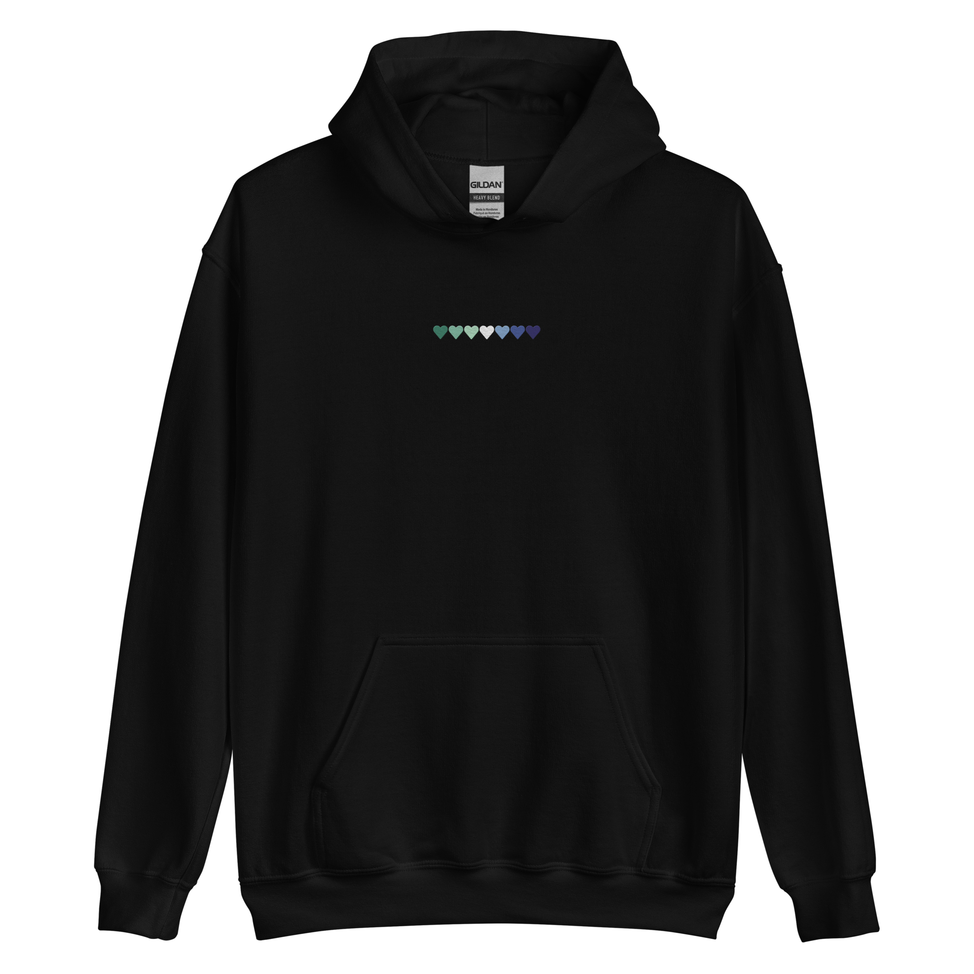 Embroidered Gay Pride Hoodie: Pride Flag Horizontal Heart Design