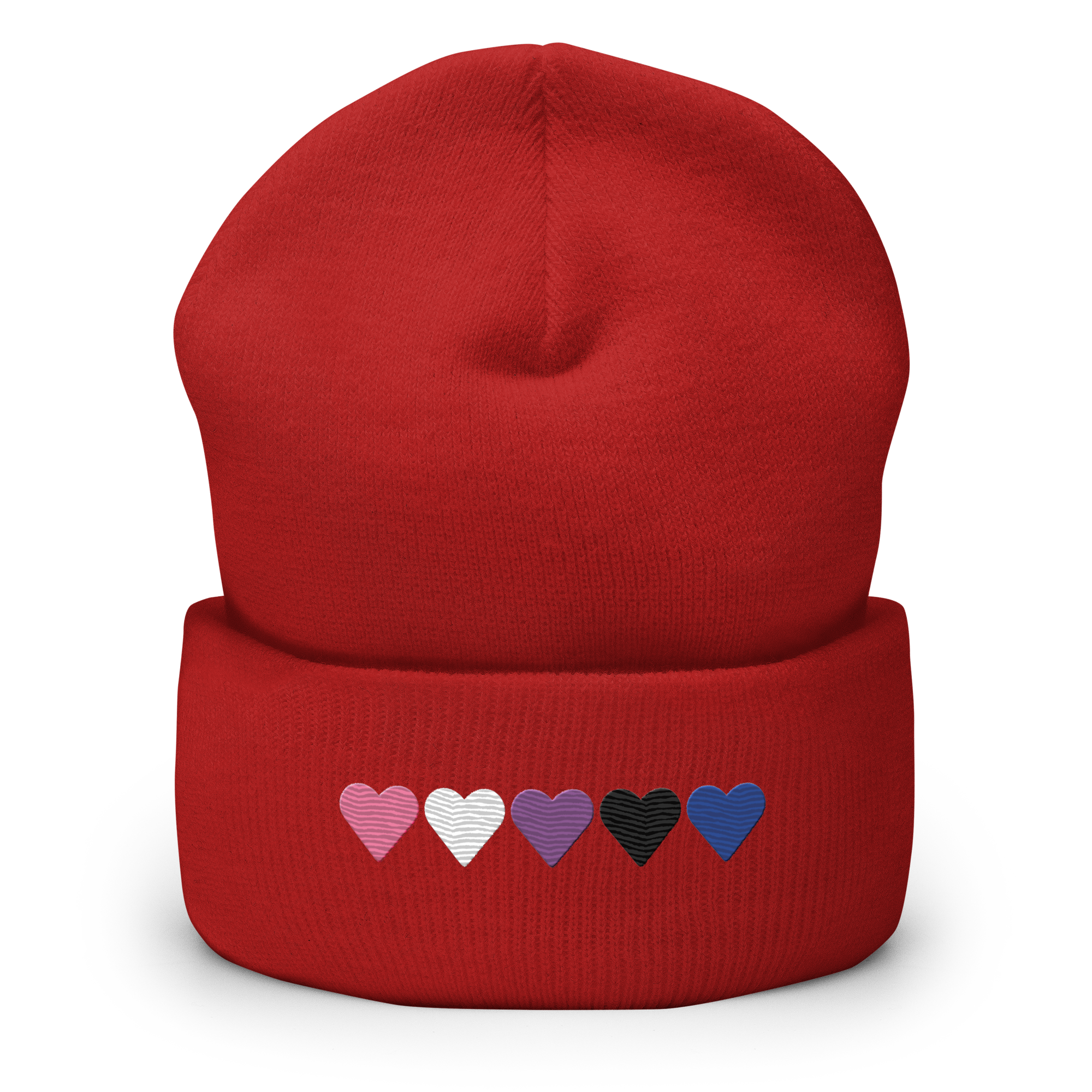 Embroidered Genderfluid Beanie: Pride Flag Horizontal Heart Design