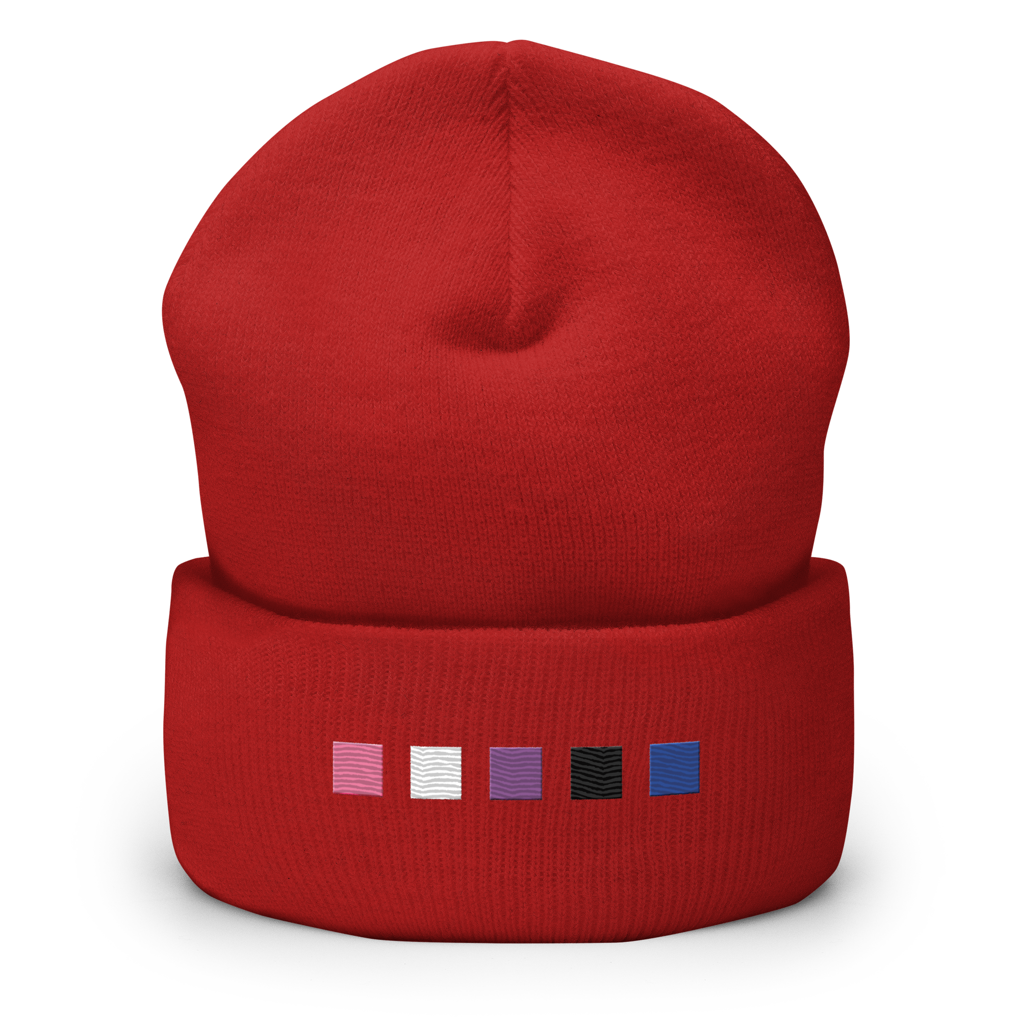 Embroidered Genderfluid Beanie: Pride Flag Horizontal Square Design