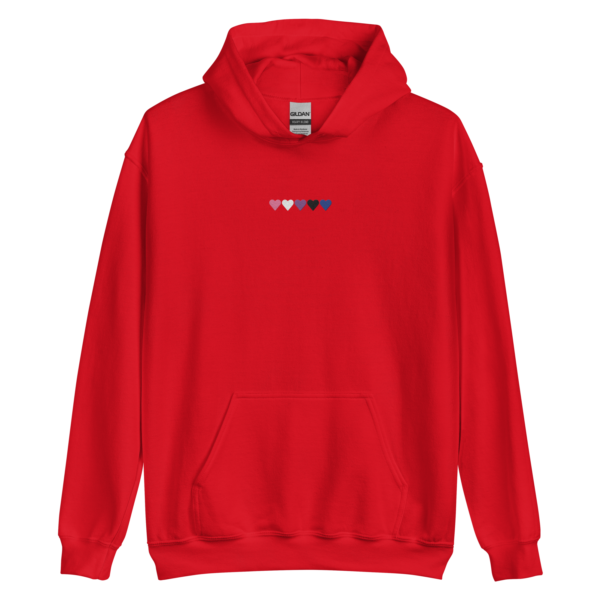 Embroidered Genderfluid Hoodie: Pride Flag Horizontal Heart Design