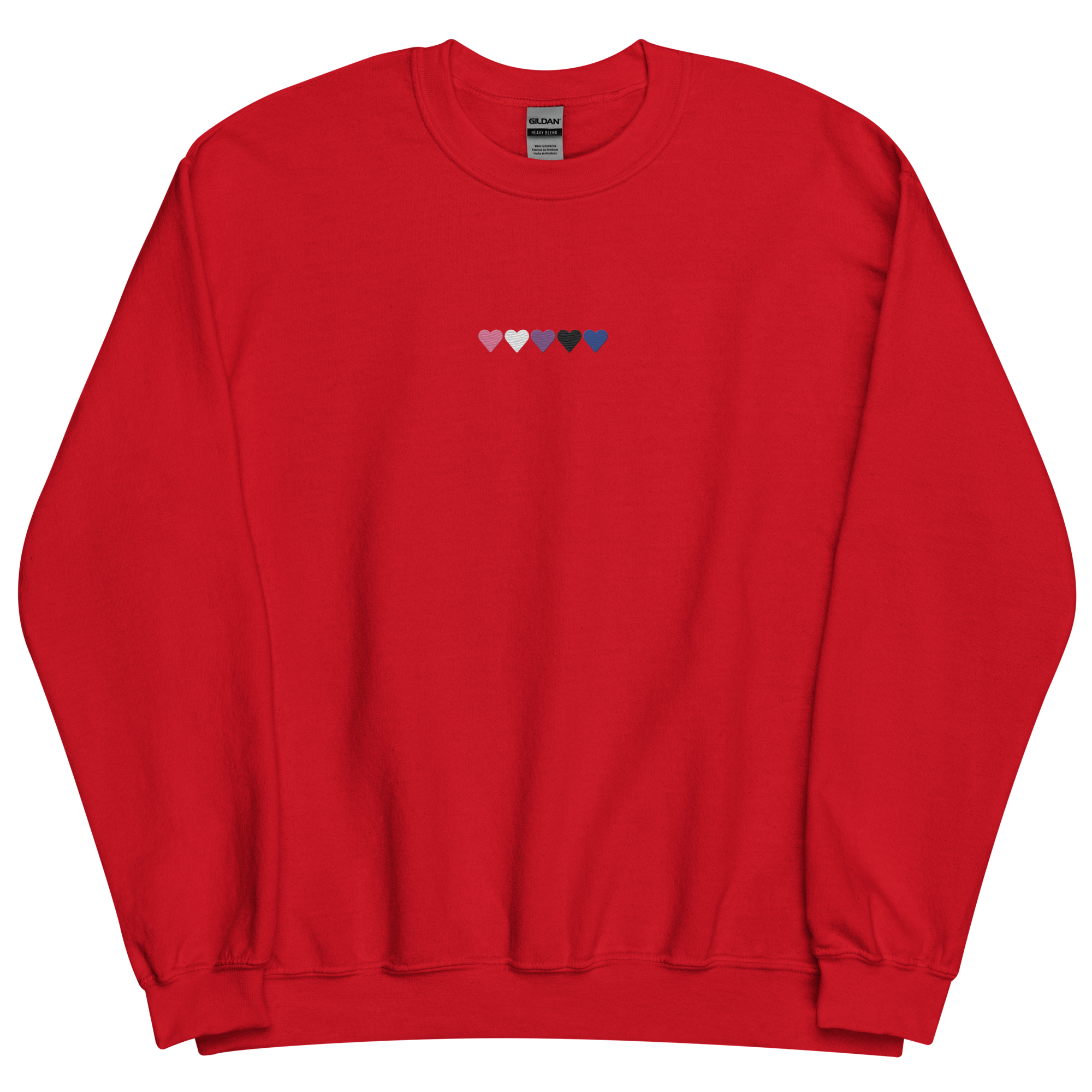 Embroidered Genderfluid Sweatshirt: Pride Flag Horizontal Heart Design