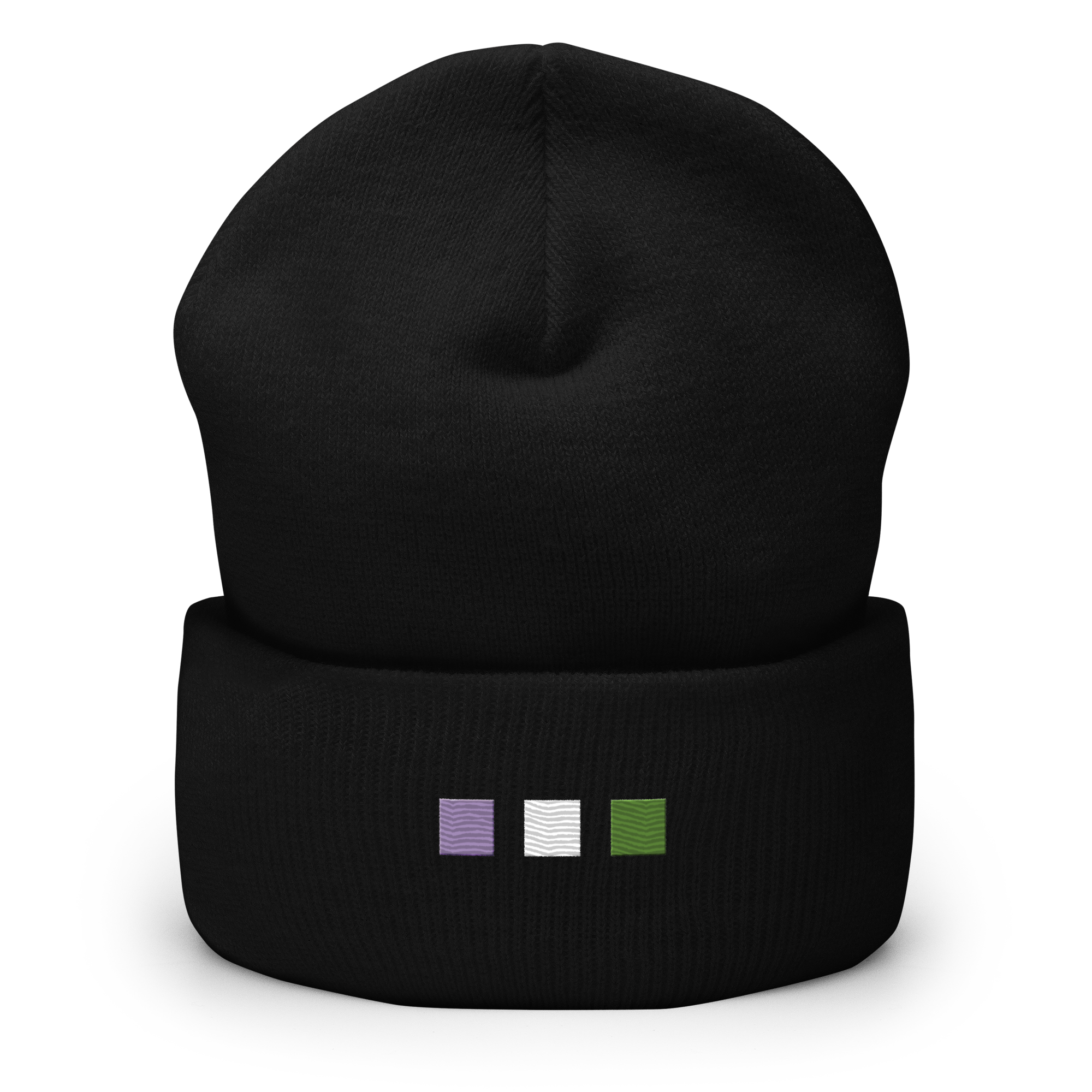 Embroidered Genderqueer Beanie: Pride Flag Horizontal Square Design