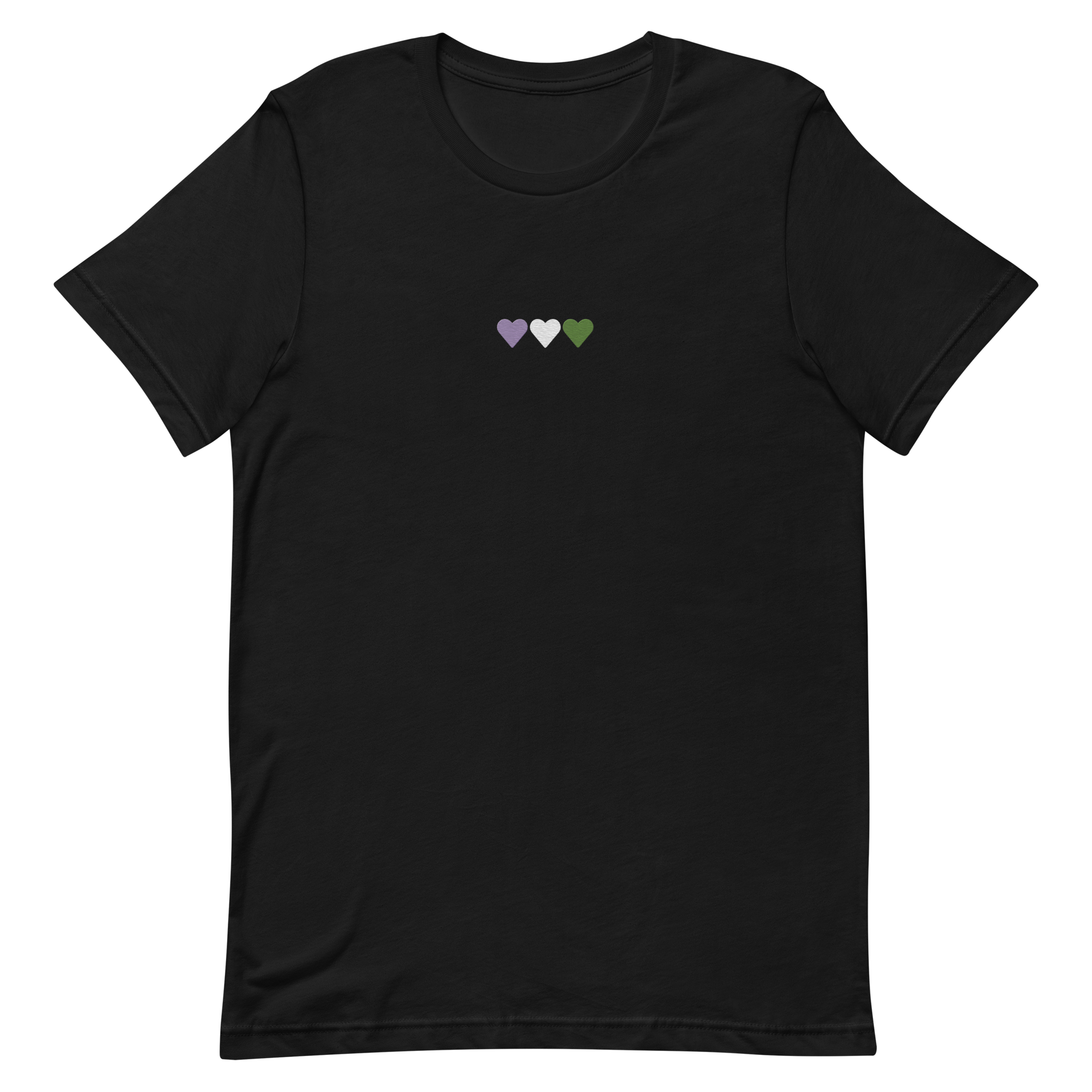 Embroidered Genderqueer T-Shirt: Pride Flag Horizontal Heart Design