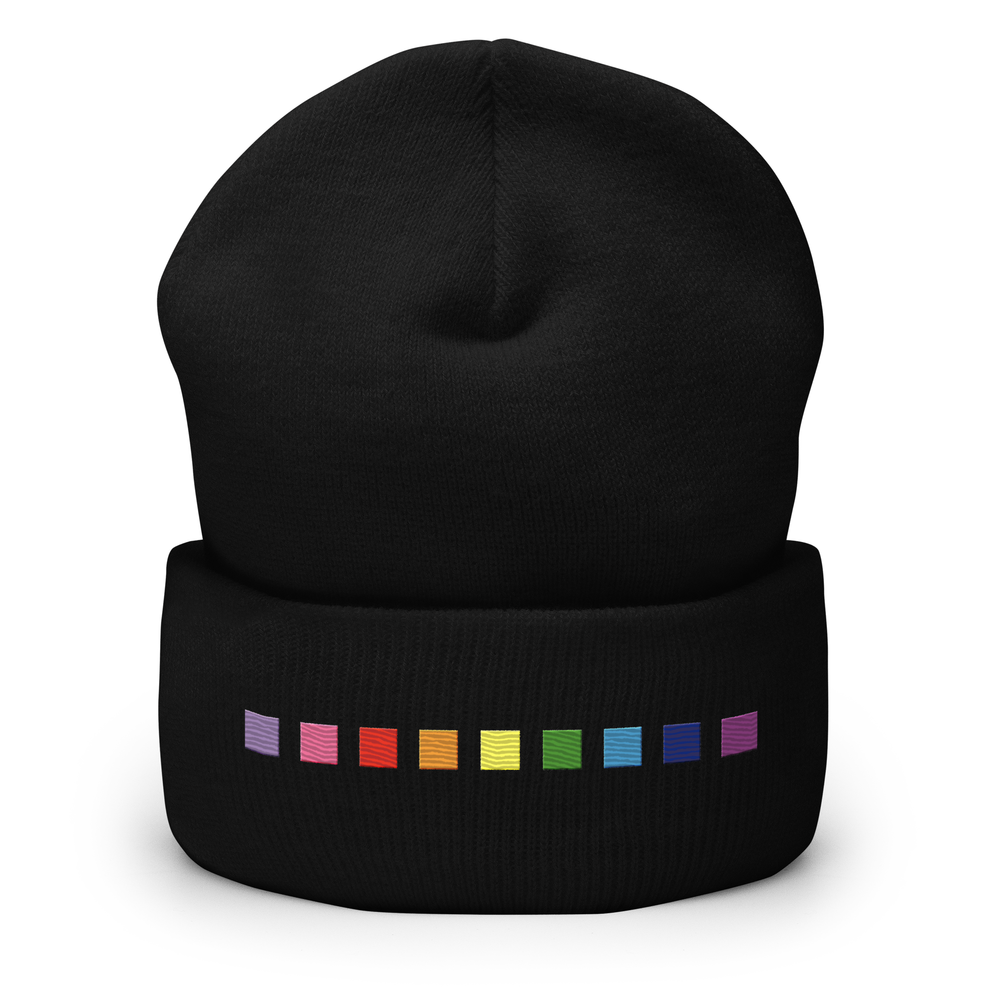 Embroidered Gilbert Baker Pride Beanie: Pride Flag Horizontal Square Design