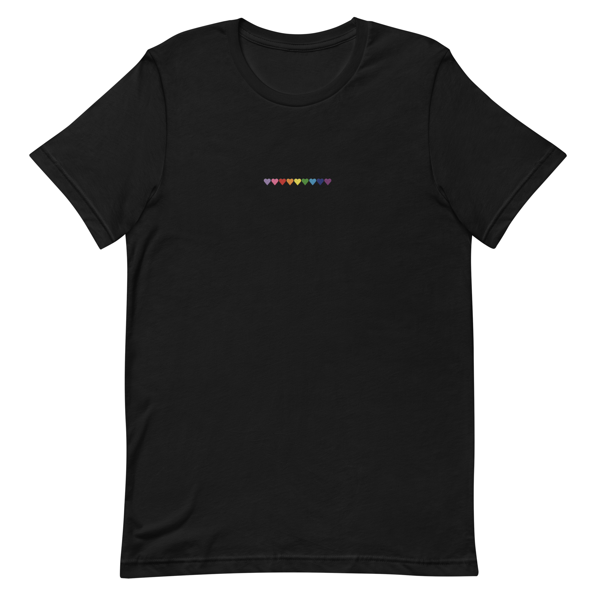 Embroidered Gilbert Baker Pride T-Shirt: Pride Flag Horizontal Heart Design