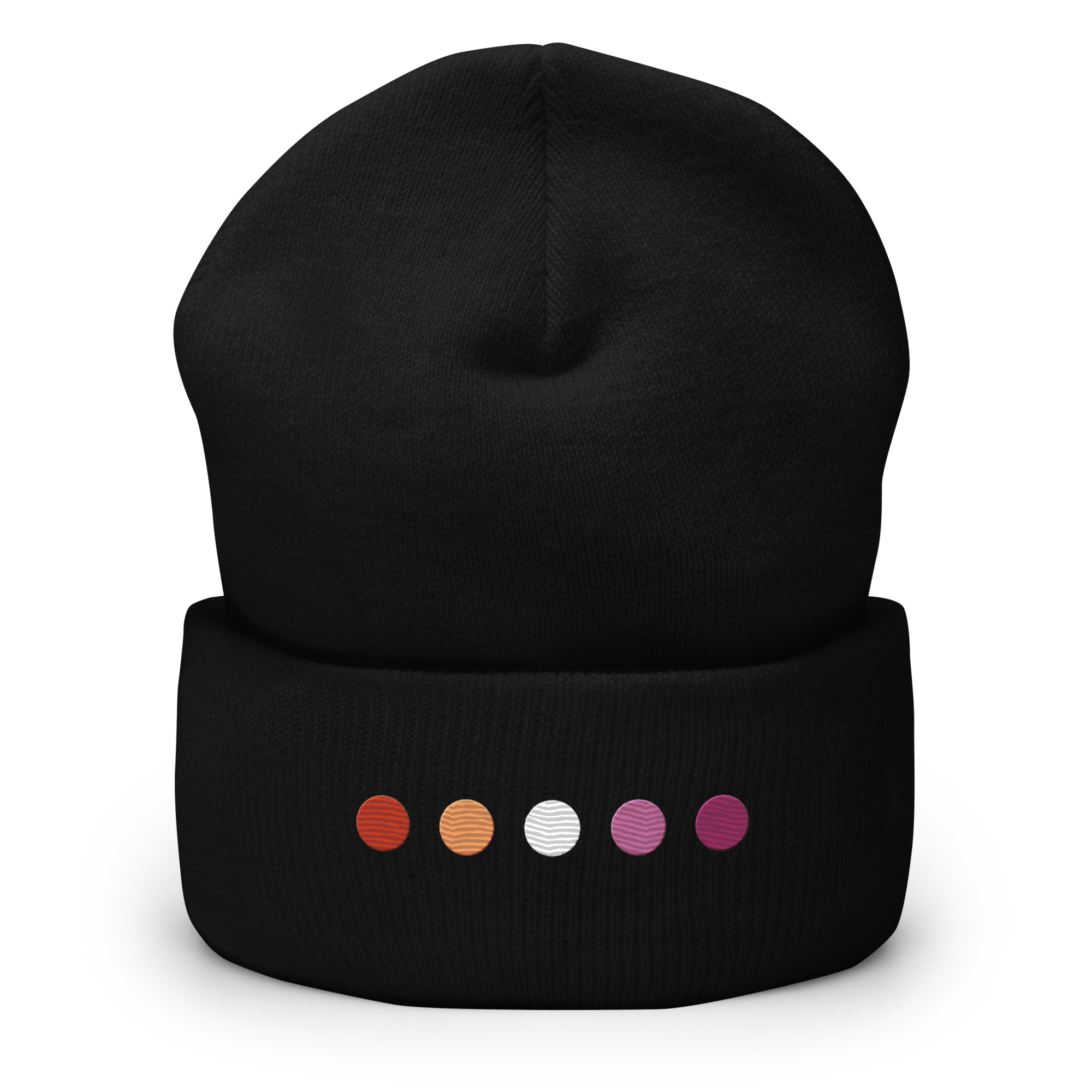 Embroidered Lesbian Beanie: Pride Flag Horizontal Circle Design