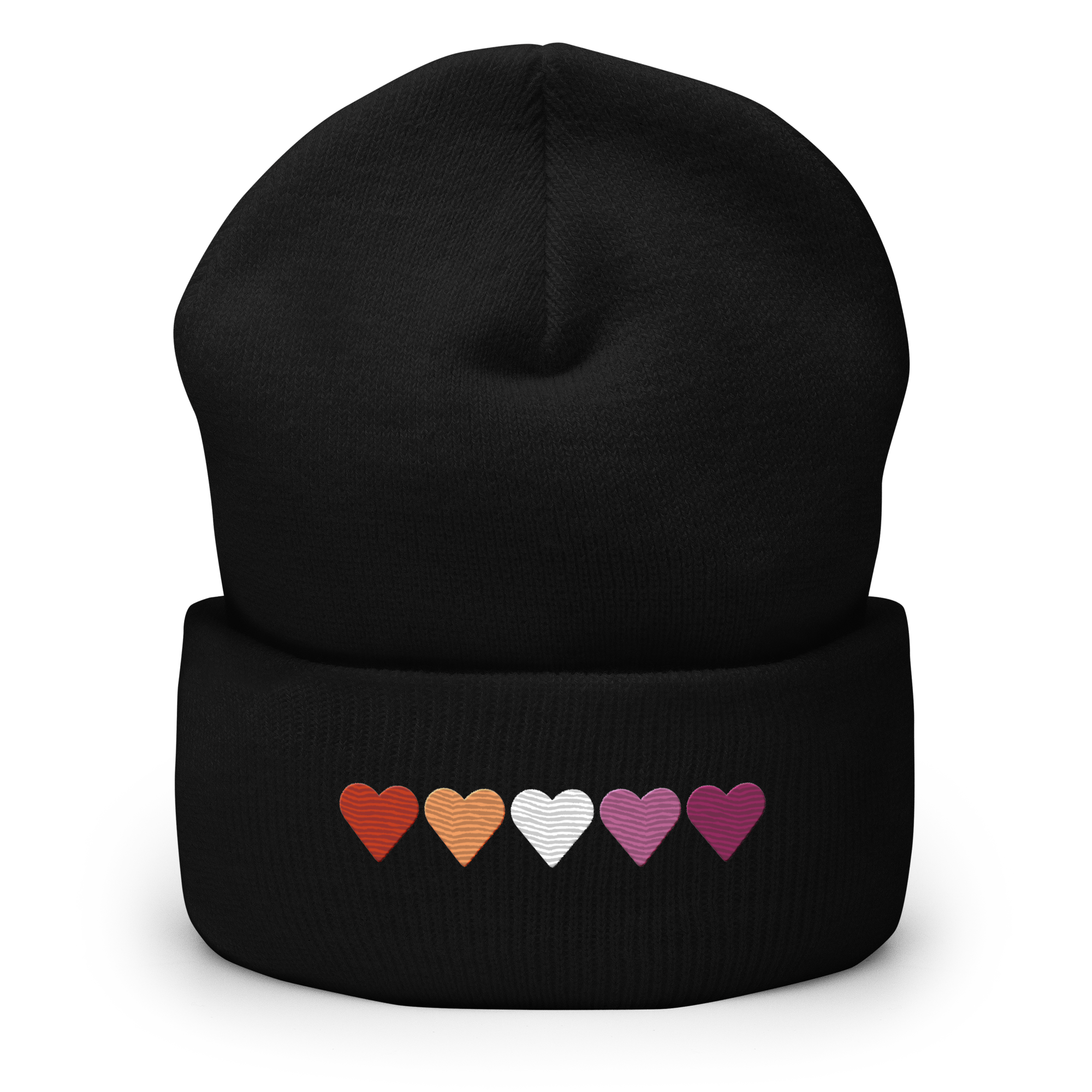 Embroidered Lesbian Beanie: Pride Flag Horizontal Heart Design