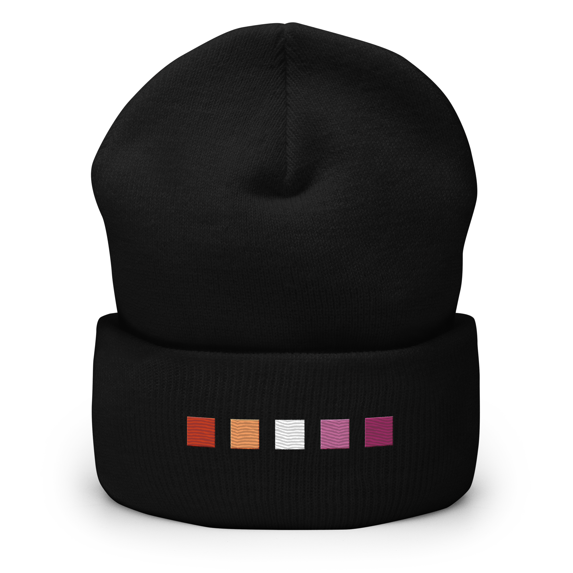Embroidered Lesbian Beanie: Pride Flag Horizontal Square Design