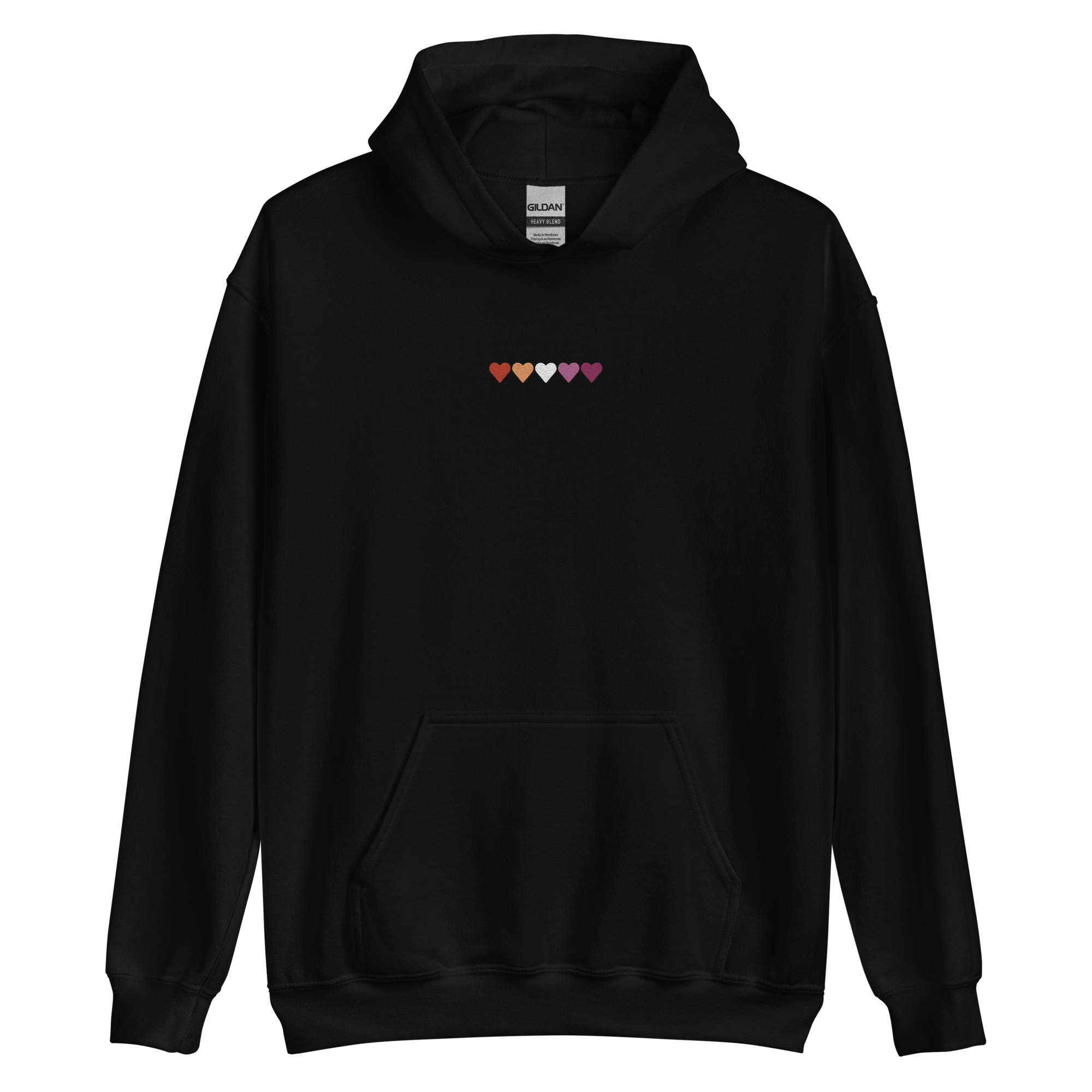 Embroidered Lesbian Hoodie: Pride Flag Horizontal Heart Design