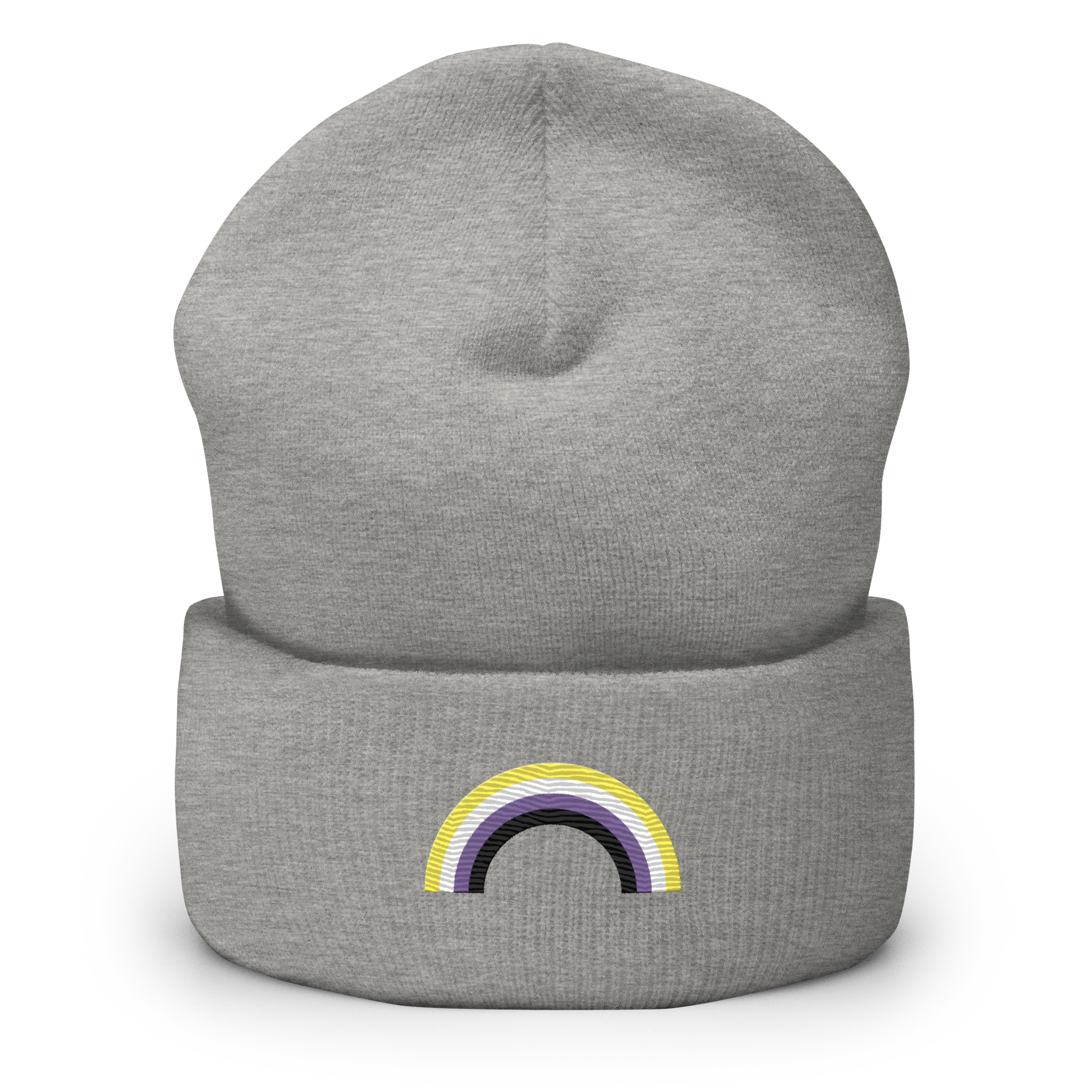 Embroidered Nonbinary Rainbow Beanie: Pride Flag LGBTQ+ Design