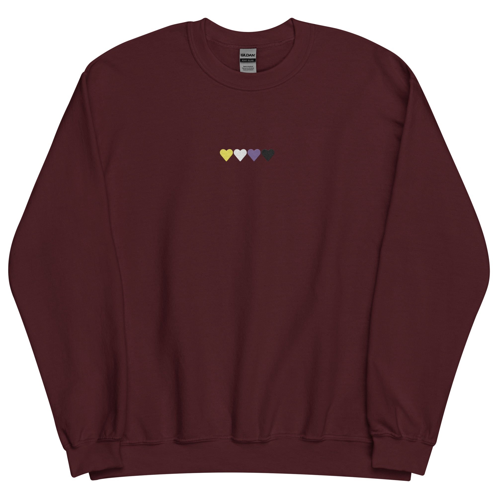 Embroidered Nonbinary Sweatshirt: Pride Flag Horizontal Heart Design