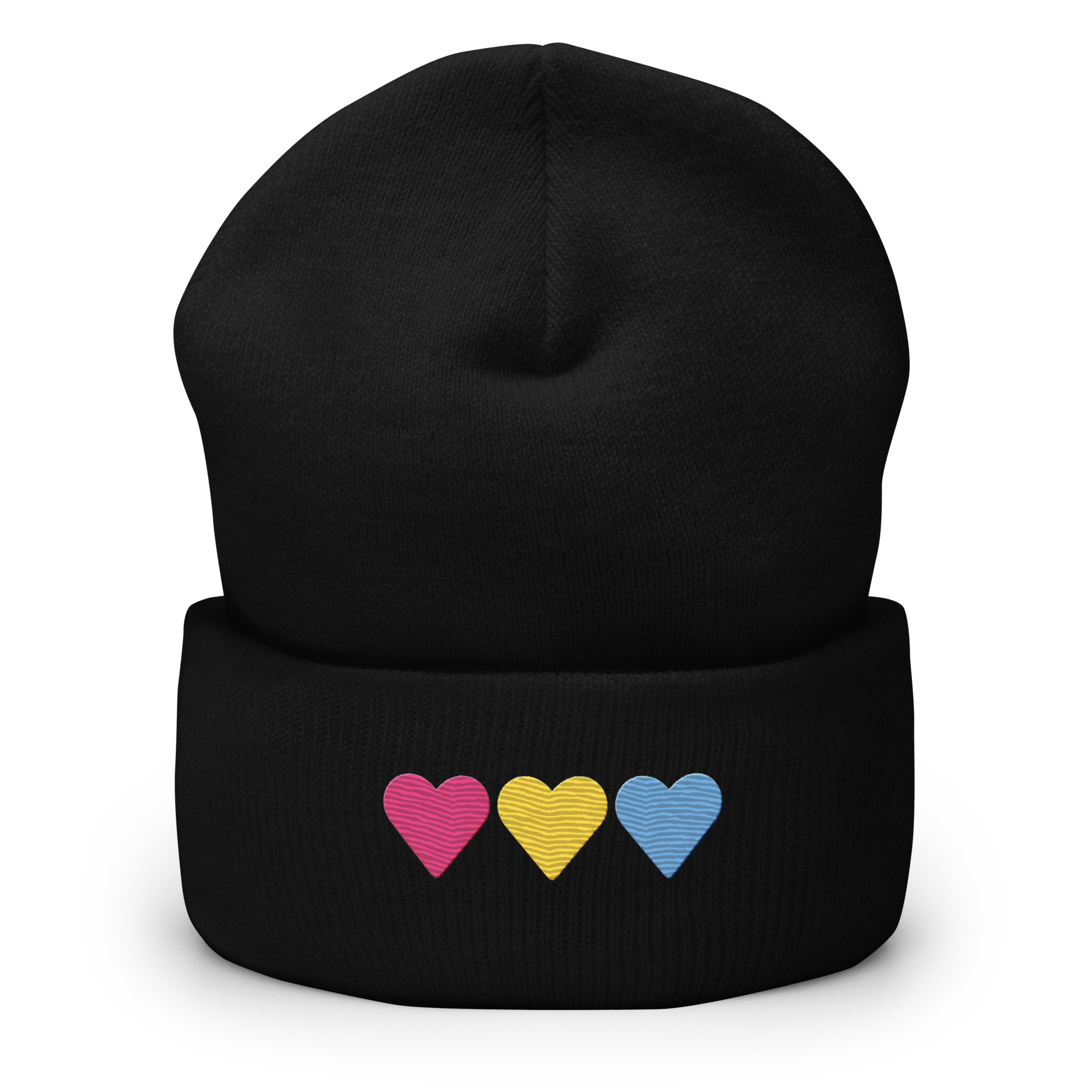 Embroidered Pansexual Beanie: Pride Flag Horizontal Heart Design