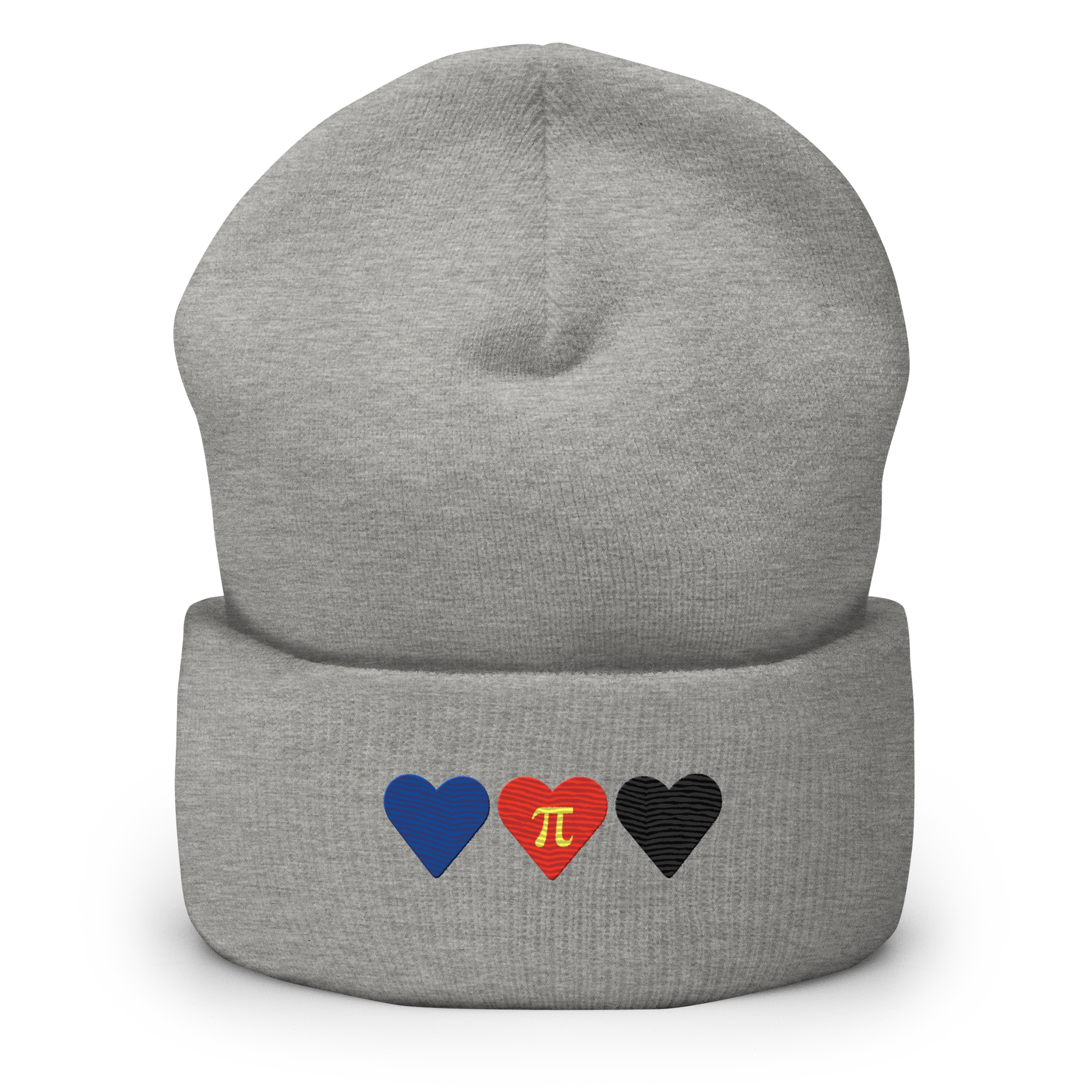 Embroidered Polyamory Beanie: Pride Flag Horizontal Heart Design