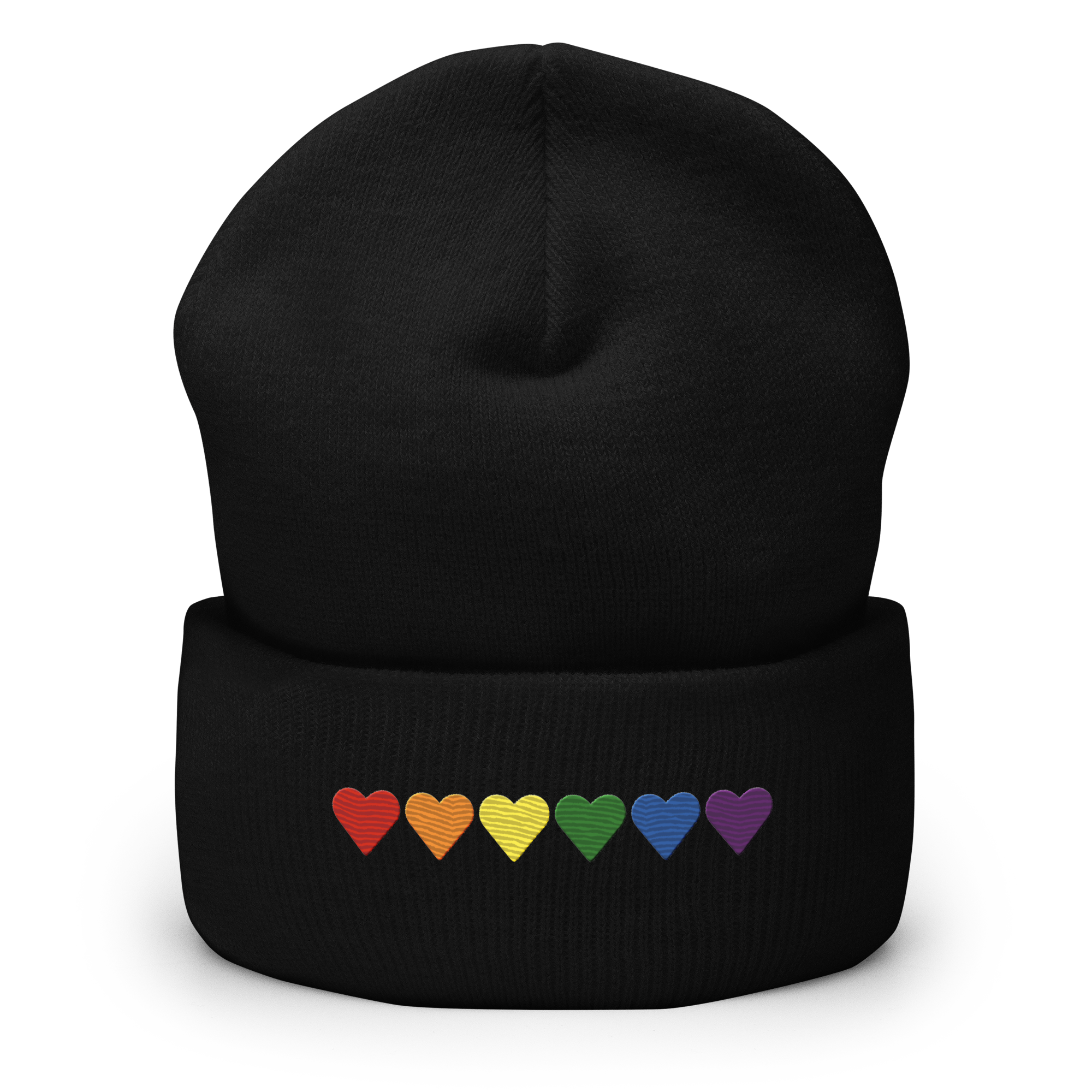 Embroidered Pride Beanie: Pride Flag Horizontal Heart Design