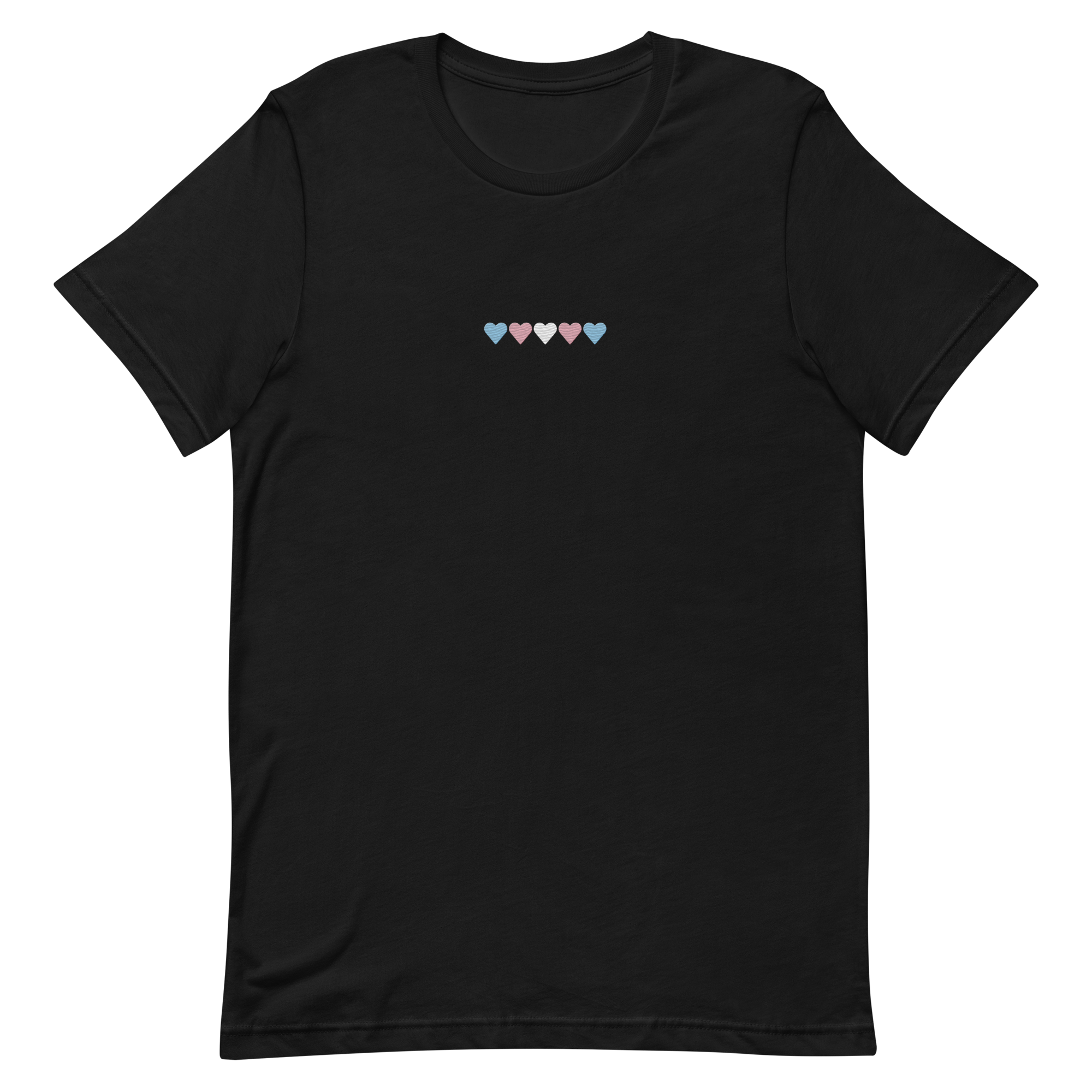 Embroidered Transgender T-Shirt: Pride Flag Horizontal Heart Design
