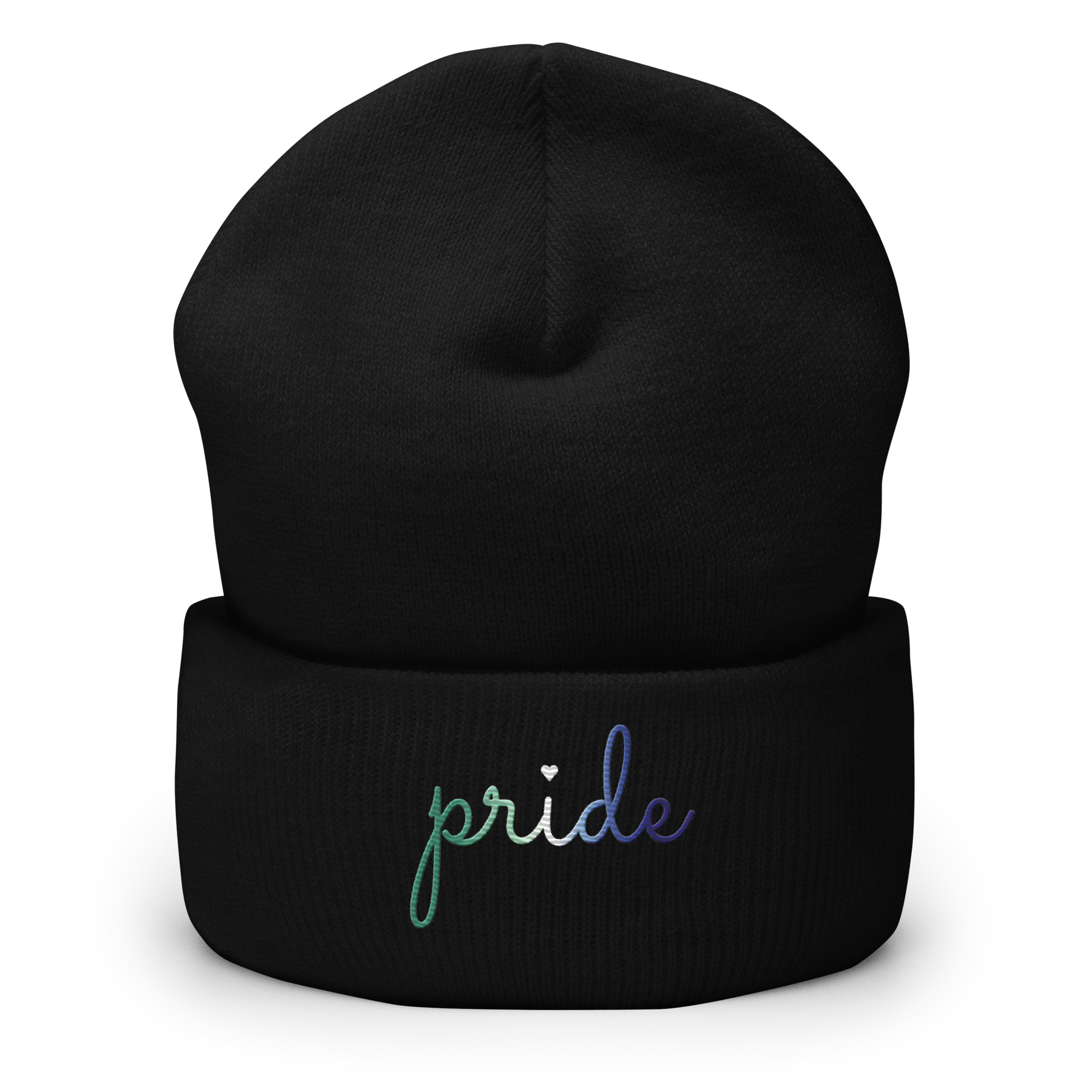 Gay Pride Beanie: Cursive 'Pride' in Gradient Colors