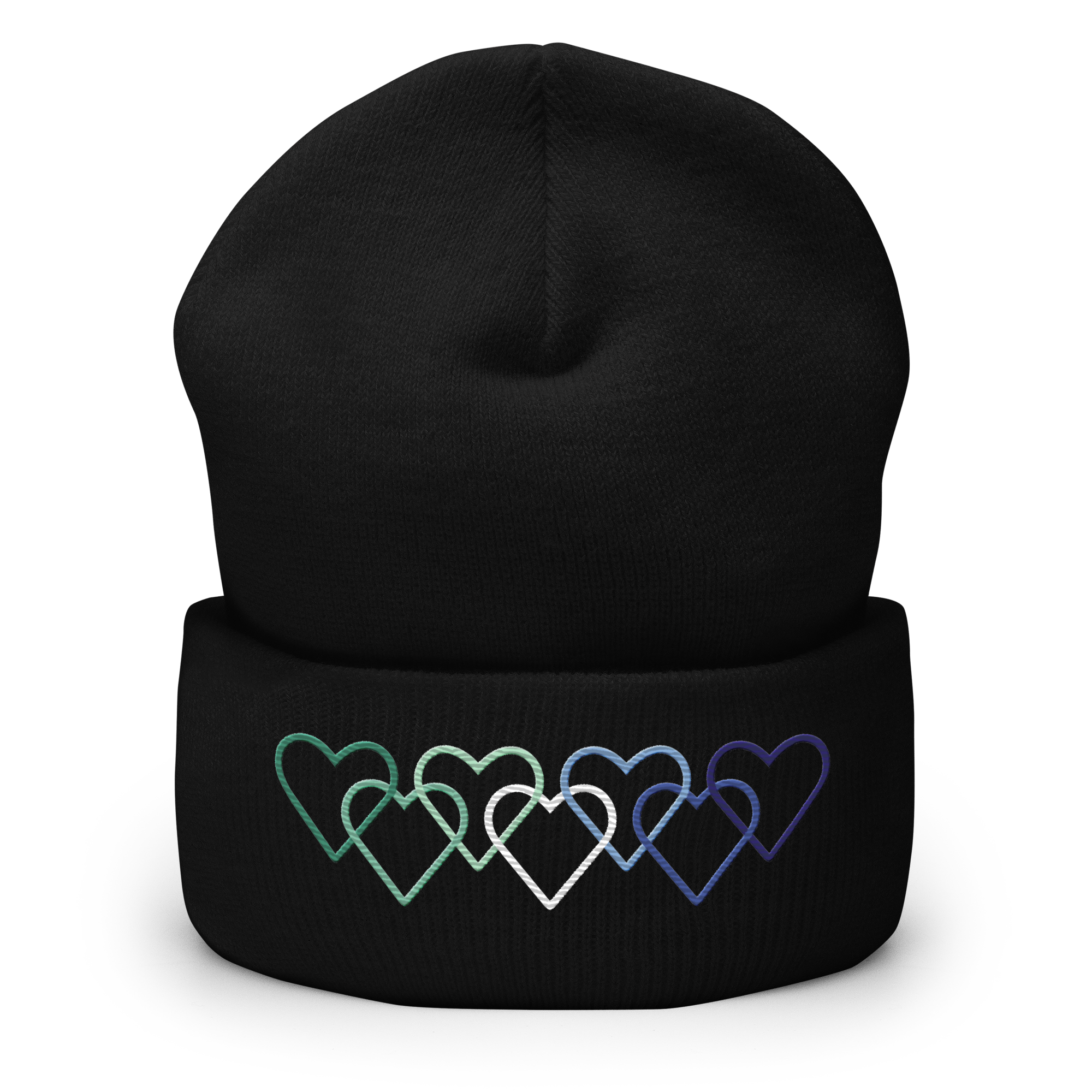 Gay Pride Beanie: Interlaced Heart Outlines Embroidered Hat