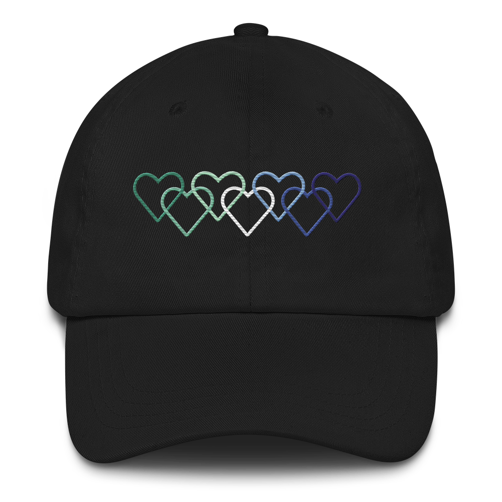 Gay Pride Hat: Interlaced Heart Outlines Embroidered Cap
