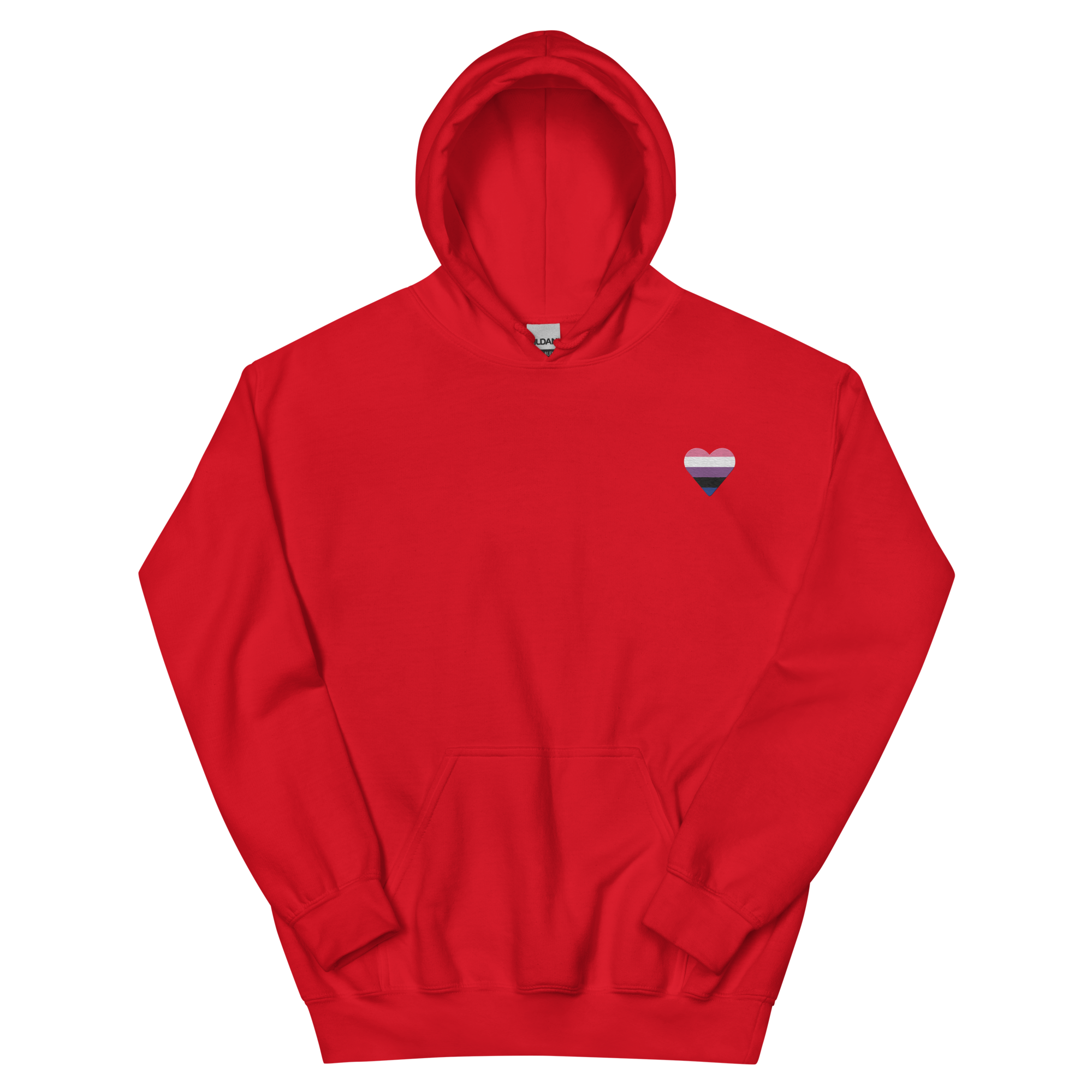 Genderfluid Flag Embroidered Heart Hoodie: Celebratory LGBTQ+ Pride Design