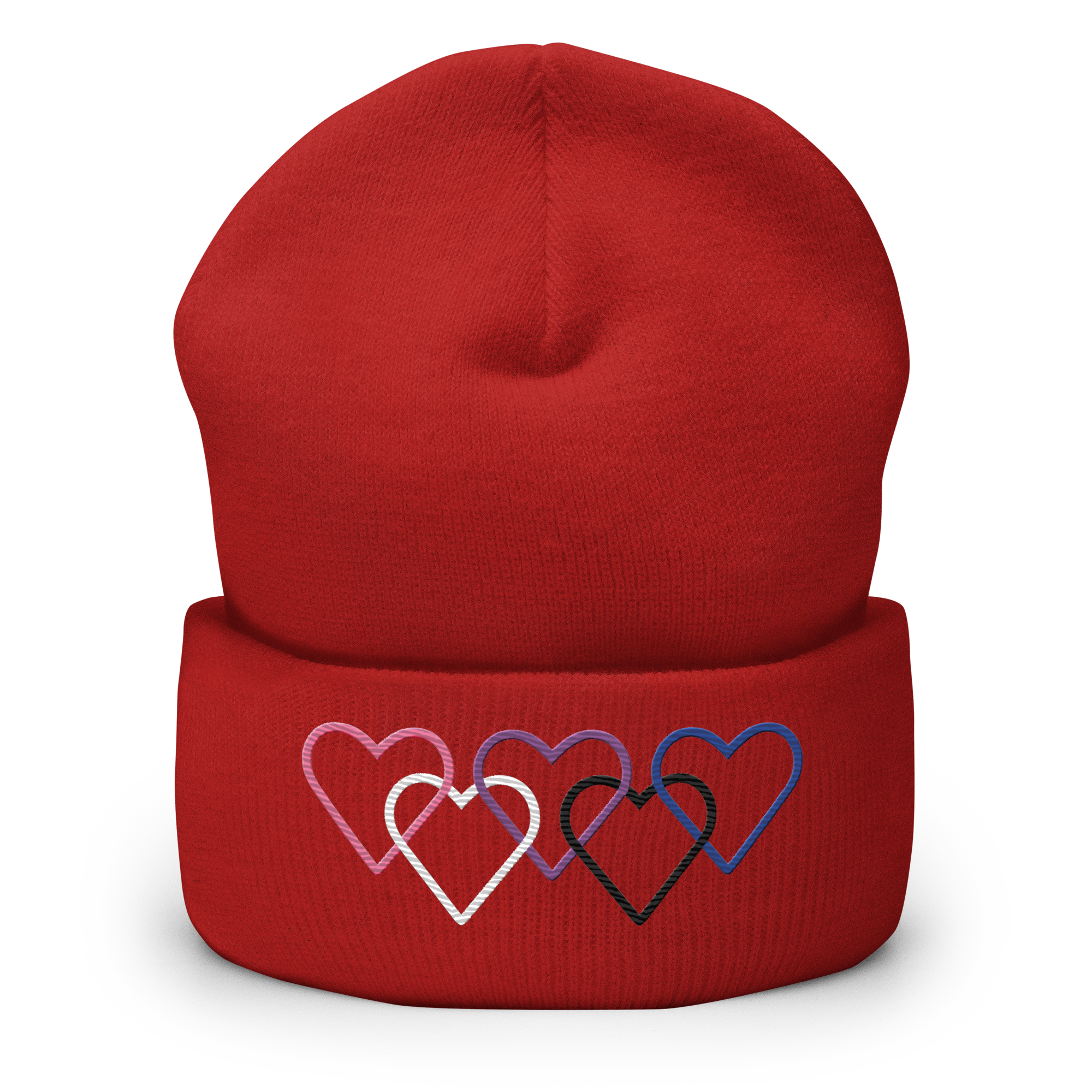 Genderfluid Pride Beanie: Interlaced Heart Outlines Embroidered Hat