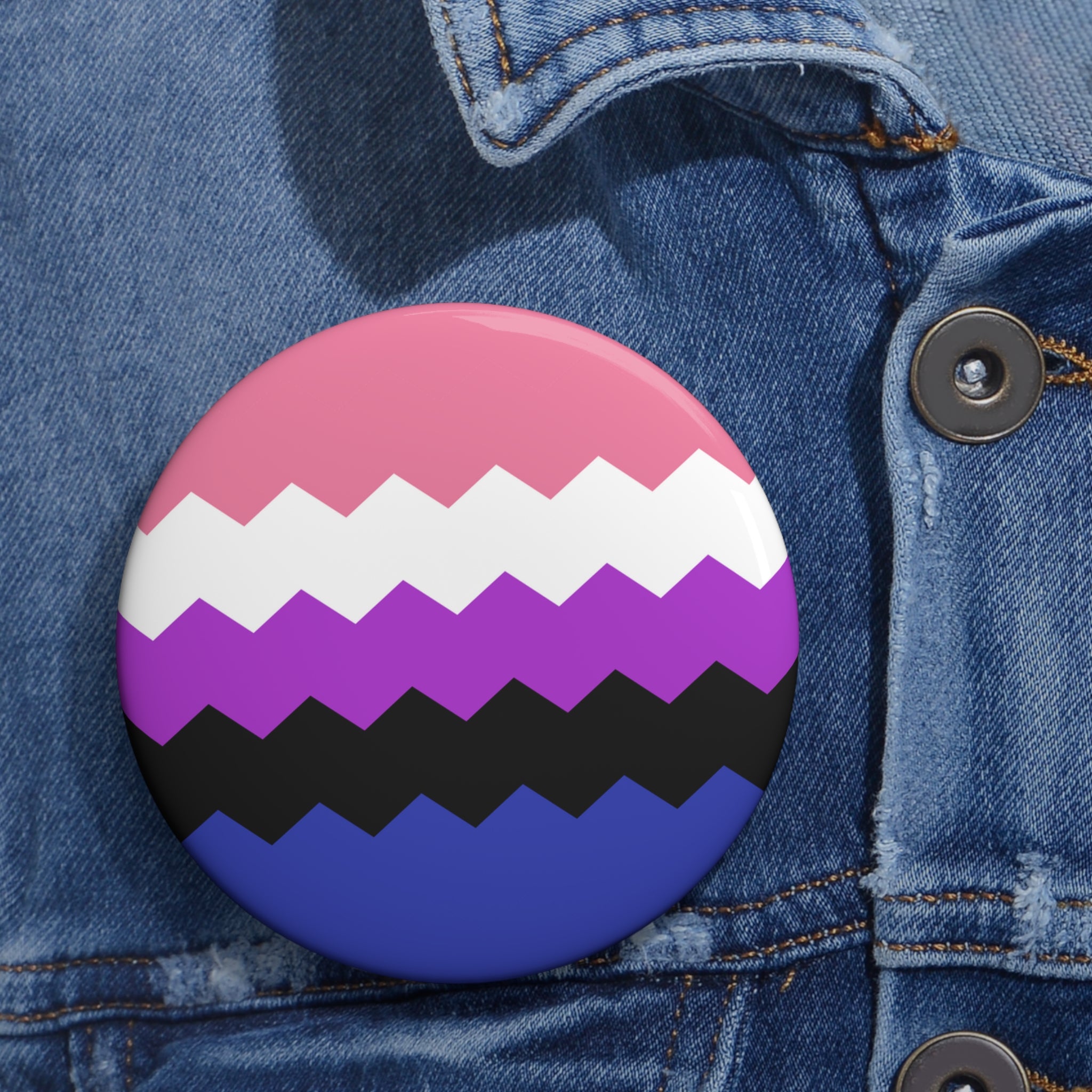 Genderfluid Pride Flag Pin: Round Button with Sharp Design