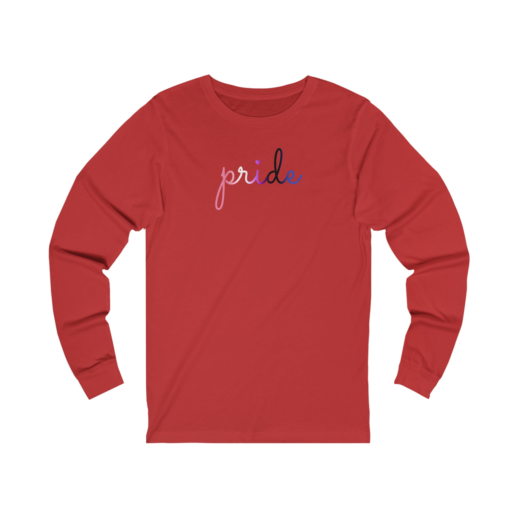 Genderfluid Pride Long Sleeve T-Shirt: Flowing Cursive 'Pride' in Gradient Hues